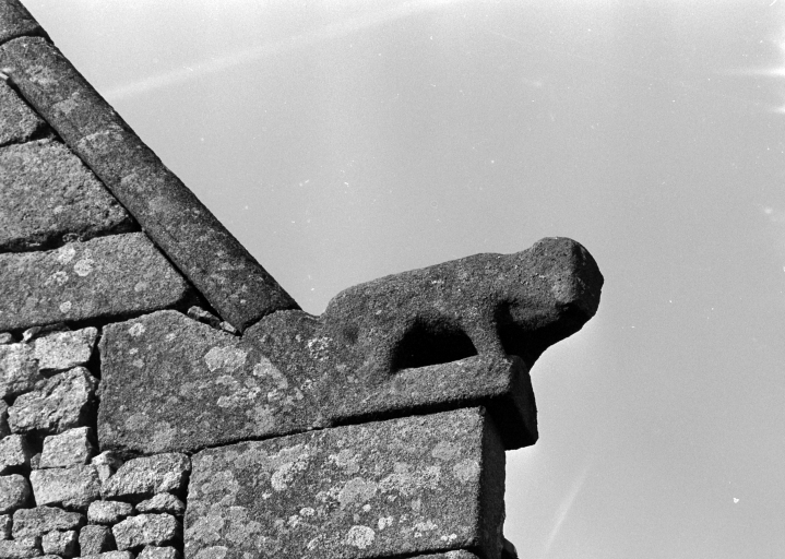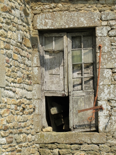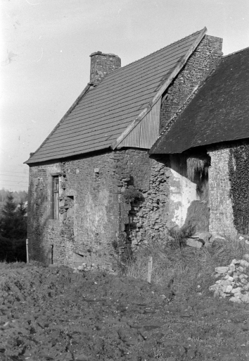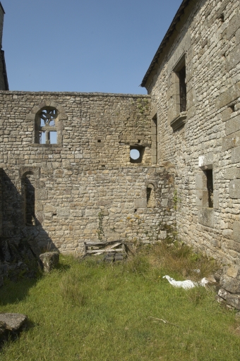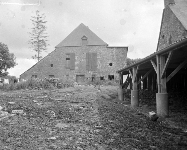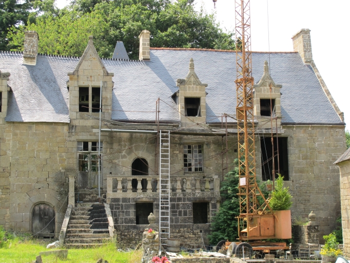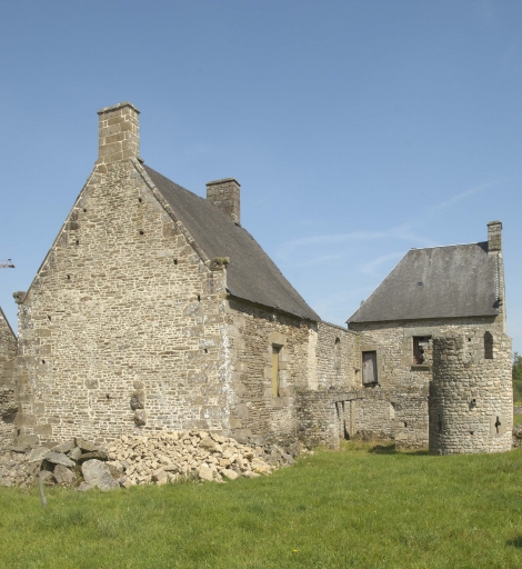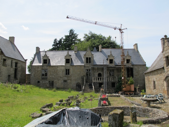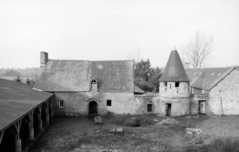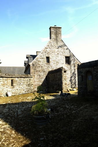 Ce lieu est composé de différents bâtiments formant une cour ; ils sont tous, sans exception, construits en granite et couverts d'ardoise et de tuile mécanique. Le bâtiment situé au nord de la cour possède ainsi une très belle maçonnerie de pierre de taille de granite en façade sud. La toiture à très forte pente et à longs pans est couverte d'ardoise. Les encadrements des baies de la façade sud sont très soignés ; la porte en plein cintre située en partie centrale possède en effet un encadrement mouluré d'un tore, elle est par ailleurs surmontée d'un larmier. De part et d'autre de cette porte, se trouvent deux fenêtres, celle de l'ouest possède un encadrement mouluré et un linteau décoré d'une accolade très aigue. Celle de l'est présente également un encadrement mouluré et, dans les angles supérieurs, il existe un décor de baguettes croisées. A l'intérieur, au rez-de-chaussée, il existe deux cheminées en granite situées sur les pignons. La cheminée du pignon ouest est composée de corbeaux à doubles ressauts sous lesquels se trouve un décor de visages humains sculptés. Le bâtiment situé à l'ouest de la cour a été remanié, toutefois, il présente encore une maçonnerie de pierres de taille de granite et un toit à longs pans couvert d'ardoise ; les pignons sont débordants. Un pan de la toiture est couvert en tuiles mécaniques (partie nord-ouest). A l'arrière de ce bâtiment, en façade ouest, se trouvent deux tours, l'une ronde au sud et l'autre carrée plus au nord. Le rez-de-chaussée abrite un cave alors que les pièces de vie sont situées au premier étage. Le bâtiment situé au sud-ouest de la cour est construit en moellon de granite ; il possède un toit à longs pans à très forte pente. A l'intérieur, au rez-de-chaussée, se trouve une cheminée sur le pignon ouest. Le plafond de la pièce du rez-de-chaussée est très haut ; la hauteur très importante de la fenêtre du rez-de-chaussée en façade nord témoigne de cette hauteur de plafond importante. Ce plafond est composé de poutres de très forte section ainsi que de solives ; ce plafond conserve des traces de polychromie. Il subsiste également dans cette pièce des traces des enduits qui recouvraient les murs. La cheminée possède une très haute hotte droite construite en pierre de taille de granite. Les corbeaux sont très bombés et les piédroits présentent une forme de colonnes séparées en deux par un réglet. Enfin, le bâtiment qui se trouve au sud de la cour est composé d'une tour carrée à l'est, associée à un autre bâtiment de plan quadrangulaire situé plus à l'ouest. Ces bâtiments sont construits en moellon de granite et couverts d'ardoise. Les pignons sont débordants et décorés de crossettes en forme d'animaux. Les chaînages d'angles et les encadrements de baies sont réalisés en pierre de taille. Les encadrements de baies sont chanfreinés, l'une des fenêtres de l'étage possède un appui saillant. A l'étage du corps de bâtiment quadrangulaire, se trouve une pièce à feu dont la poutraison est de forte section ; un placard mural se trouve à droite de la cheminée. La cheminée du pignon sud possède un décor exceptionnel : corbeaux à doubles ressauts, piédroits chanfreinés décorés de visages humains et de motifs de trilobes, de lancettes, de losanges et autres motifs floraux et végétaux. A l'est de la cour, s'élèvent les anciennes dépendances : colombier, fournil.