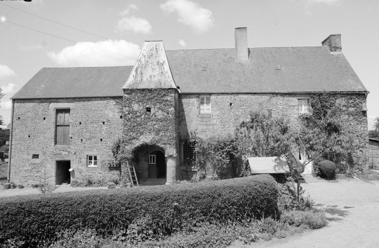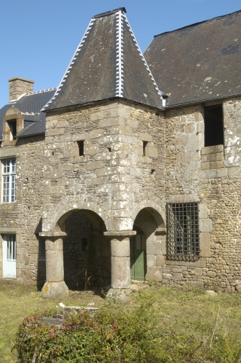 L´ancien manoir ainsi que ses dépendances : métairie, chapelle, fournil... sont figurés sur le premier cadastre communal réalisé en 1832. Le manoir de la Bretonnière avait un droit de haute justice. Il appartenait aux de Coglès en 1430, puis aux du Châtellier en 1470. C´est vraisemblablement l´une de ces deux familles qui a été commanditaire de la construction de la partie Est du logis. Par la suite, il passe par alliance à de nombreuses familles dont celle de Pinczon, seigneurs de la Pinczonnière à la fin du 16e siècle puis, il passe aux Hay des Nétumières au 17e siècle. En 1789, la Bretonnière appartenait aux des Euzenou, seigneurs de Kersalaun. Le corps de logis se trouve au nord-est de l´ancien ensemble manorial, alors que les dépendances se trouvent plutôt au sud et que les bâtiments situés à l´ouest semblent correspondre à l´ancienne métairie. Le manoir possédait également une chapelle qui a été détruite en 1841, il est fort possible qu´il s´agisse du bâtiment figuré au sud-ouest du logis sur le cadastre de 1832. En effet, ce bâtiment n´existe plus actuellement et la partie Est de ce dernier était composée de trois pans rappelant l´orientation et la forme du chevet d´une chapelle. Cette chapelle existait déjà au milieu du 17e siècle, date à laquelle elle est mentionnée au moment de la présentation par Françoise Pinzcon, dame de la Bretonnière, de François Macé pour desservir la chapelle. Cette chapelle était déjà ancienne à l´époque car, Madame de Marboeuf dut la faire réparer en 1684. La fondation de la chapelle remontait peut-être à la date de construction du logis, c´est-à-dire le milieu ou la seconde moitié du 15e siècle. La salle du rez-de-chaussée est équipée d´une cheminée dont le décor est propre à l´architecture de la seconde moitié du 15e siècle (corniche entre le linteau et la hotte, décor des corbeaux...). La fenêtre de la salle située en façade sud possède une grille en fer forgé dont le centre est orné d´un losange. Cette fenêtre est équipée, à l´intérieur, de coussièges (bancs ménagés dans l'ébrasement d´une fenêtre afin de profiter de la lumière du jour, de lire ou de pouvoir observer ce qui se passe à l´extérieur). A gauche de la cheminée située sur le mur de refend Est, se trouve une porte de communication avec la pièce à feu située à l´Est. Cette pièce possède une cheminée sur le mur pignon Est ; cette dernière est de taille beaucoup plus réduite que celle de la salle. Dans l´angle sud-ouest de cette pièce, sont visibles les vestiges d´un escalier en vis en bois qui desservait les deux pièces de l´étage. Ces deux pièces étaient situées au-dessus de celles du rez-de-chaussée ; il s´agissait de deux chambres. Celle qui se trouve au-dessus de la salle du rez-de-chaussée possède une porte en façade sud qui donnait accès au cabinet situé au-dessus du porche de l´entrée. Cette pièce était-elle une pièce destinée à l´observation des environs ou bien plus vraisemblablement un cabinet de retrait (pièce de travail conçue pour que l´on puisse s´y isoler) ? La chambre de l´étage située à l´Est possède, comme la salle, une cheminée datable des environs du milieu du 15e siècle ; le réglet soulignant la face antérieure de l´unique colonne formant piédroit est en effet tout à fait caractéristique de cette époque en architecture. Alors que la partie Est du logis est relativement uniforme en termes d´architecture et de datation (milieu, voire seconde moitié du 15e siècle), la partie ouest de l´édifice, beaucoup plus remaniée et par conséquent beaucoup plus difficile à interpréter, semble avoir été ajoutée par la suite. Toutefois, grâce à des photographies prises dans les années 1970 lors d'une précédente enquête d'inventaire du patrimoine, nous connaissons l'aspect originel de cette partie qui a été quelque peu transformée depuis cette époque. Il semble que l'étage de cette partie a été occupé par une pièce à feu car la façade sud est percée d'une fenêtre de dimensions importantes. Dans les années 1970, il existait encore à la Bretonnière, au dessus du pilier Est du porche, un exceptionnel cadran solaire portant le monogramme du Christ IHS. Ce cadran solaire a aujourd'hui malheureusement disparu. Les bâtiments de dépendances qui se trouvent au sud du logis abritait, d'ouest en est, un fournil, un cellier/étable ainsi qu'une grange.