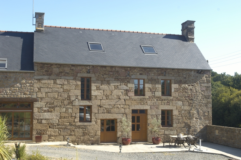 En 1832, lorsque le premier cadastre de la commune a été réalisé, ce bâtiment existait déjà ; toutefois, il était à l'époque divisé en deux propriétés distinctes. L'architecture actuelle du bâtiment, même si elle a subi quelques remaniements, témoigne de cette division car, il existe en effet deux portes et deux fenêtres au rez-de-chaussée ce qui témoigne de l'existence de deux pièces à feu indépendantes l'une de l'autre à l'origine. Même si la façade est relativement uniforme aujourd´hui, il est assez visible que le bâtiment a été rehaussée et que la partie Est ne date pas de la même époque que la partie ouest. Le rehaussement de la maçonnerie est très net car il est réalisé en petits moellons de granite alors que le reste de la construction emploie de très gros blocs de granite. Ce bâtiment a sans doute été rehaussé au cours du 19e siècle dans le but d'affaiblir le pente de toiture et de créer un volume de comble plus important. A l'intérieur, il existait donc deux pièces à feu au rez-de-chaussée, surmontées d'un grenier. La section des poutres ainsi que la forme de la cheminée de la partie ouest attestent d'une époque de construction se rapprochant de la fin du 17e siècle. La maçonnerie de la façade sud de cette partie, essentiellement composée de gros blocs de pierre de taille de granite, ainsi que la taille des baies et le fait que le linteau de la fenêtre soit beaucoup plus haut que celui de la porte sont également des éléments qui témoignent de cette époque de construction. La taille plus importante des baies de la partie est ainsi que la section des poutres plus réduite et le décor plus simple de la cheminée témoignent d'une reprise de cette partie au cours de la première moitié du 19e siècle (avant 1832, date de réalisation du premier cadastre de la commune, sur lequel figure ce bâtiment). Bien que le bâtiment ait été divisé en deux au début du 19e siècle, comme en témoigne le premier cadastre communal, il semble que les deux logis aient été réunis pour former une ferme, peut-être au début du 20e siècle. L'ancienne dépendance construite en granite bleu au sud-ouest de la cour ainsi que le fournil situé au sud correspondent en effet à des constructions du début du 20e siècle.
