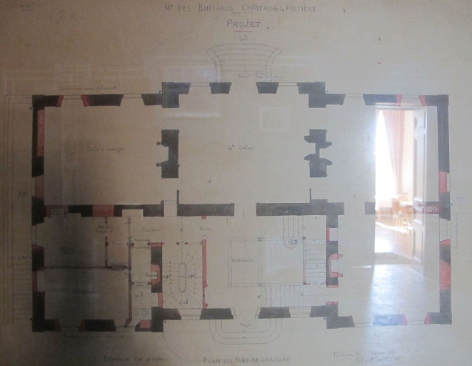 Le domaine est acheté en 1826 par les Buffards qui y construisent le château actuel, entouré d'un parc à l'anglaise. L'édifice a été construit entre 1826 et 1850, après la destruction d'un ancien manoir. L'existence de l'ancien manoir est attestée dès le début du 16e siècle, époque durant laquelle il appartenait à la famille du Châtellier. En 1575, la Folletière passe par alliance aux Becdelièvre, seigneurs du Bouëxic puis, elle est unie au Bas-Châtellier en Saint-Germain-en-Coglès de 1618 à 1789. L'ancien manoir fut, en 1796, le quartier général de Joseph de Puisaye qui tenta d'organiser un soulèvement des départements de l'Ouest. Des plans, conservés par le propriétaire actuel, témoignent de la construction de cet édifice lors du second quart du 19e siècle. Ces plans sont signés de l´architecte Jourdin, architecte fougerais qui a notamment travaillé au milieu du 19e siècle sur des églises telles que celles de Saint-Jean-sur-Couesnon, de Vendel, de Châtillon-en-Vendelais, Montauban-de-Bretagne... Ces plans datent de 1847, ce qui laisse supposer que la construction du château remonte à la fin des années 1840. A cette époque, le jardin était déjà dessiné et l´ancien manoir était détruit. Il existe en effet également plusieurs plans de projets pour les jardins, qui datent, selon toute vraisemblance du second quart du 19e siècle car le château y figure ainsi que l'emprise au sol des anciens bâtiments, visibles sur le cadastre de 1833. Il existe deux projets différents ; le second projet est le plus proche du plan actuel des jardins de la Folletière (emplacement de la ferme au nord-ouest du château notamment). Sur un de ces deux projets, figure une chapelle au sud-ouest du château, au bord de la pièce d'eau. A la fin du 19e siècle, le bâtiment a subi des aménagements intérieurs : création d'un hall et suppression du "couloir" central. Des plans attestent en effet de ces aménagements ; ils datent de février 1895 et sont signés de Jean-Baptiste Martenot, architecte de la ville de Rennes de 1858 à 1895 (Halles de la Place des Lices, Palais du Commerce...). Les communs datent de 1867 ainsi qu´en témoigne une date portée sur une horloge. Des remises à voitures ont été construites au début du 20e siècle. Abandonné et vidé de ses décors au cours du 20e siècle, l'édifice a été racheté en 1994 par M. Jouno qui l'a réaménagé (transformation en appartement et chambres d'hôtes). Le parc paysager, également longtemps abandonné, a été transformé en plusieurs jardins thématiques pour devenir aujourd'hui le Parc floral de Haute-Bretagne. L'architecture de ce bâtiment n'est pas sans évoquer celle des demeures construites par les armateurs malouins au cours de la première moitié du 18e siècle appelées "malouinières". A l'instar de ce château, de nombreuses malouinières sont en effet couvertes d'une toiture à croupes ; les façades rythmées par un nombre impair de travées ainsi que l'existence d'avant-corps sur ce château sont également des éléments très fréquents dans l'architecture des malouinières. L'existence d'épis de faîtage sur le toit à croupes et la présence de frontons triangulaires sont également des éléments caractéristiques de l'architecture des malouinières. L'avant corps central surmonté d'un fronton triangulaire de la façade sud de ce château n'est pas sans rappeler celui de la malouinière du Vaulerault construite vers 1725 à Saint-Méloir-des-Ondes, même chose pour les sept travées qui rythment la façade de ce château ainsi que celle de la malouinière de la Chipaudière à Saint-Malo, élevée vers 1715. Ainsi, un siècle après la construction de ces malouinières, l'architecte Jourdin s'est très probablement inspiré de ces modèles pour la construction du château de la Folletière. Cet architecte a d'ailleurs apparemment assez peu travaillé sur l'architecture civile ; au contraire, nombreuses sont ses interventions sur les églises du département d'Ille-et-Vilaine. Plusieurs châteaux furent construits sur des sites d'anciens manoirs autour du milieu du 19e siècle dans la commune : la Vieuville, la Folletière et Fretay. L'architecture de ces trois bâtiments atteste de l'extraordinaire richesse et de l'éclectisme de l'architecture de cette époque car ils témoignent tous d'un style très différent : le style néo-classique pour la Folletière, le style néo-gothique pour la Vieuville et le style "Troubadour" pour Fretay.
