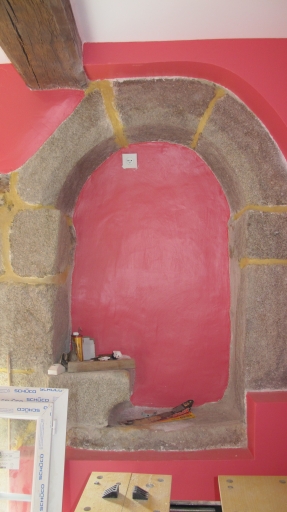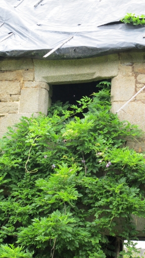 La construction de ce bâtiment remonte à la charnière des 16e et 17e siècles. Lors de la réalisation du premier cadastre communal en 1833, il semble que ce bâtiment était divisé en deux propriétés distinctes. Même s'il était divisé en deux propriétés différentes en 1833, il semble évident qu'au moment de sa construction, ce bâtiment n'abritait qu'une seule propriété. Les caractéristiques de l'architecture de ce bâtiment permettent d'en faire remonter la construction à la charnière des 16e et 17e siècles. Ainsi par exemple, la forte pente de toiture et l'existence de pignons débordants à crossettes attestent de cette époque de construction, tout comme le chanfrein présent sur les encadrements de baies de la façade sud, ou encore l'existence d'une porte en plein cintre à doubles rouleaux... Ce bâtiment était composé de deux pièces à feu non superposées contrairement à certains autres logis de cette époque, dans lesquels les deux pièces à feu étaient situées l'une au dessus de l'autre avec des cheminées superposées. Dans le cas présent, il existait une pièce à feu au rez-de-chaussée à l'ouest et une pièce à feu à l'étage à l'est. La partie est du rez-de-chaussée ne possédait pas de cheminée ; fait inhabituel, des portes jumelées donnaient accès à cette partie. La fonction de cette partie est difficilement identifiable car nous ne connaissons ni l'identité, ni le rang, ni la fonction du commanditaire du bâtiment, peut-être s'agissait-il d'un cellier ou d'une étable ou bien d'une pièce de travail si la maison appartenait à un artisan (pièce destinée au tissage de toiles ?). Au-dessus de la pièce à feu du rez-de-chaussée, n'existait qu'un grenier alors que la partie est de l'étage était occupée par une pièce à feu. Les différents équipements de cette pièce à feu sont tout à fait caractéristiques des bâtiments de ce type construits à cette époque : cheminée en granite équipée de niches latérales, fenêtres à coussièges en façade sud, vaisselier et lave-mains. La porte donnant sur l'extérieur, située près du vaisselier de l'étage, est une création postérieure, elle date très probablement de l'époque où le bâtiment a été divisé en deux propriétés distinctes. Ainsi, l'accès à la pièce à feu de l'étage de cette partie pouvait directement se faire en façade nord par cette porte. Une escalier, probablement droit et parallèle à cette façade, devait y donner accès. Une question demeure en suspens quant à la disposition intérieure de ce bâtiment, il s'agit de l'existence et de l'emplacement de l'escalier d'origine. A cette époque, la majorité des escaliers étaient des escaliers en vis ; au vu des dispositions du bâtiment, celui-ci devait se trouver dans l'oeuvre. Le fait qu'il existe des portes jumelles en partie est de la façade sud, en plus de la porte en plein cintre à doubles rouleaux qui donne accès à la salle, laisse penser que la porte la plus à l'ouest était peut-être destinée à la desserte l'escalier, alors que celle de l'est donnait accès à la partie sans feu du rez-de-chaussée.