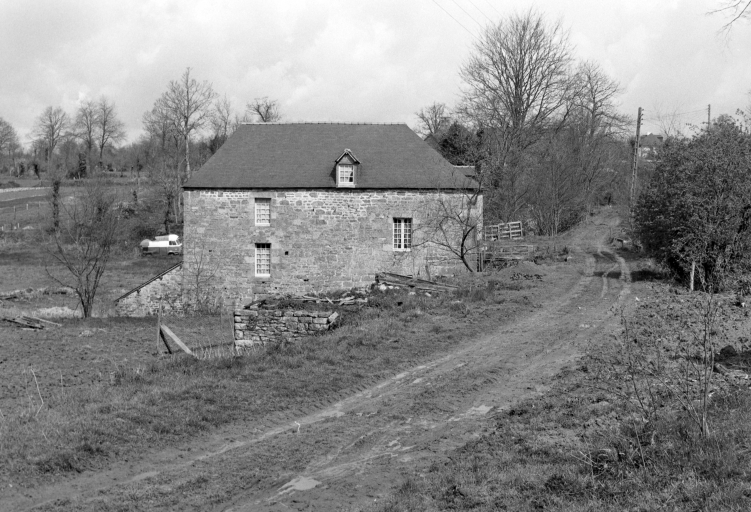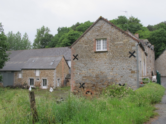Un moulin, construit en pan-de-bois, est visible sur le site. Correspondant à l'emplacement du moulin figurant sur le cadastre napoléonien, il est aujourd'hui en ruines. On peut encore y distinguer des pièces du mécanisme du moulin et des meules cerclées de fer sur le site. Le bief d'amenée passe sous la chaussée depuis l'étang. Le bief d'aval, large de deux mètres environ, est maçonné. On trouve également, à proximité, deux cylindres en pierre lisse d'un diamètre de 80cm pour une hauteur de 75cm environ, munis d'un axe en fer, ainsi que trois autres, rainurées sur leur largeur, placées au bord de la route d'accès au château du Rocher Portail depuis la D102. Il s'agit de cylindres de piles hollandaises. Celles-ci ont sans doute été installées après l'enquête réalisée en 1776, qui mentionne l'utilisation de piles à maillets. La dépendance située entre la maison et le moulin ne figure pas sur les plans cadastraux de Coglès de 1832 ou de Saint-Brice de 1833. On y distingue cependant un bief, l'emplacement d'une vanne d'amenée et d'une vanne de décharge.