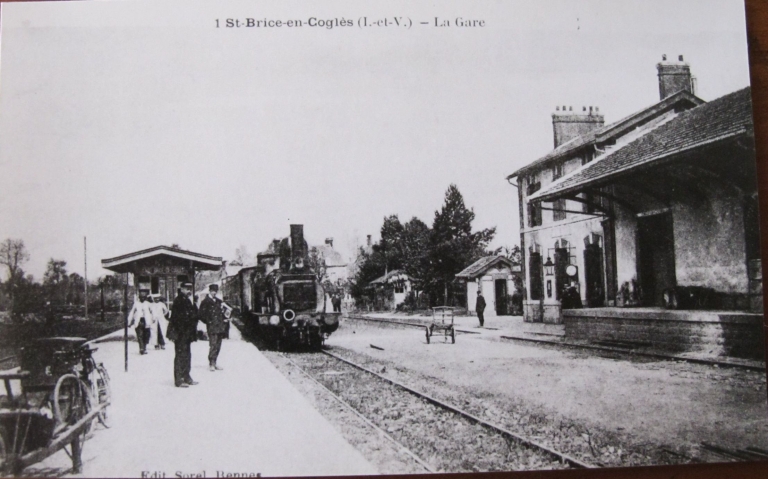 La commune possédait également une gare ferroviaire qui n'existe plus aujourd'hui. Le 24 janvier 1872 est autorisée l'exploitation du chemin de fer de Fougères à Saint-Brice-en-Coglès. Pour la partie de la ligne allant de Saint-Brice-en-Coglès à Pontorson et Moidrey, l'autorisation est donnée le 7 octobre de la même année. Le château d'eau situé boulevard Leclerc est le dernier vestige de la présence du chemin de fer à Saint-Brice-en-Coglès. Celui-ci ravitaillait les locomotives à vapeur. L'eau qui l'alimentait était pompée dans la rivière de la Loisance au lieu-dit le Pont, à plus d'un kilomètre de distance. De la station de pompage, elle était envoyée jusqu'à la gare par une canalisation souterraine qui passait sous le bourg.