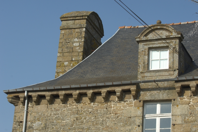 Construit en moellon de granite, le manoir possède de belles cheminées aux pignons. Les murs sont en appareil régulier moyen de granite. Les ouvertures sont en grand appareil régulier de granite, de même que les chaînes d´angles et la corniche. La toiture du manoir est couverte en ardoise d´un toit à croupe avec des coyaux très marqués et une belle articulation entre le toit et les souches de cheminées qui sont décorées de bandeaux. Toutes les ouvertures sont rectangulaires et sans décor sauf la porte et les lucarnes. La porte d´entrée est surmontée d´une fenêtre grillée. Trois lucarnes à fronton arrondi ornent le toit qui repose sur une corniche à modillons, entre chaque modillon, il y a une pierre carrée, et sous la corniche un bandeau. Le bâtiment est composé de quatre niveau : une cave, un rez-de-chaussée surélevé, un étage et un comble. La cave est éclairée par quatre jours rectangulaires, des poteaux en bois soutiennent le plancher du rez-de-chaussée. L´entrée de la cave est située dans la maçonnerie de l´escalier extérieur. Un escalier permet la distribution intérieure du bâtiment. Cet escalier repose sur un mur d´échiffre, il est à deux révolutions, deux volées droites, repos et palier. La première volée est en granite et a onze marches, les trois autres volées sont en chêne et ont douze marches. La cage d´escalier est située au centre du bâtiment et est entourée de part et d´autre d´un mur de refend. Dans l´escalier, à gauche en montant au niveau de l´avant dernière marche se trouve une meurtrière donnant sur une pièce en demi étage à laquelle on accède par un escalier en bois à une volée situé dans la cuisine. Une pièce se situe de part et d´autre de l´escalier monumental, dans chaque pièce se trouve une cheminée, au rez-de-chaussée et à l´étage, ce qui fait en tout quatre cheminées. Au rez-de-chaussée, il y avait une cuisine dans la partie gauche et une salle dans la partie droite, et à l´étage des chambres. La chambre de gauche possède une porte ancienne en chêne à panneaux moulurés et chevillés. Au rez-de-chaussée, une cloison ancienne (17e siècle) se trouve à côté de la première volée de l´escalier, elle est à claire voie en bois tourné donnant sur un réduit sous l´escalier, actuellement, il débouche sur la cave.