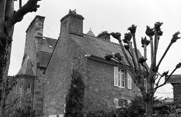 Cet immeuble est construit en grand appareil régulier de granite et couvert en ardoise. Il se compose d´un rez-de-chaussée et de plusieurs étages. Les pierres de taille de cette maison, piquées au marteau, sont appelées des « carreaux » car elles s´alignent, sur chaque rang, à la même hauteur dans le mur. Une marque de tâcheron y a d´ailleurs été relevée. Les ouvertures du rez-de-chaussée présentent des arcs segmentaires. Un bandeau délimite chaque étage ; une niche ouvragée destinée à recevoir une statue de la Vierge est placée sur la façade principale. A l´arrière une tour hors œuvre renferme l´escalier. La corniche et les têtes des cheminées monumentales sont moulurées.