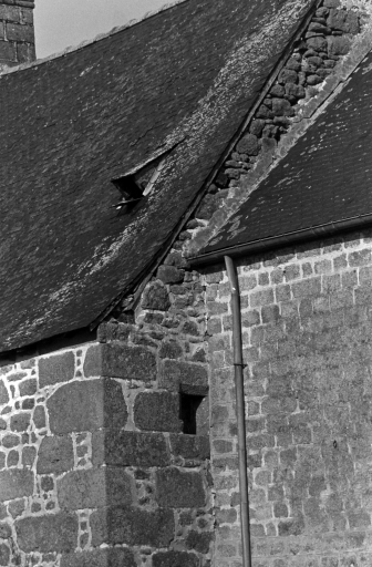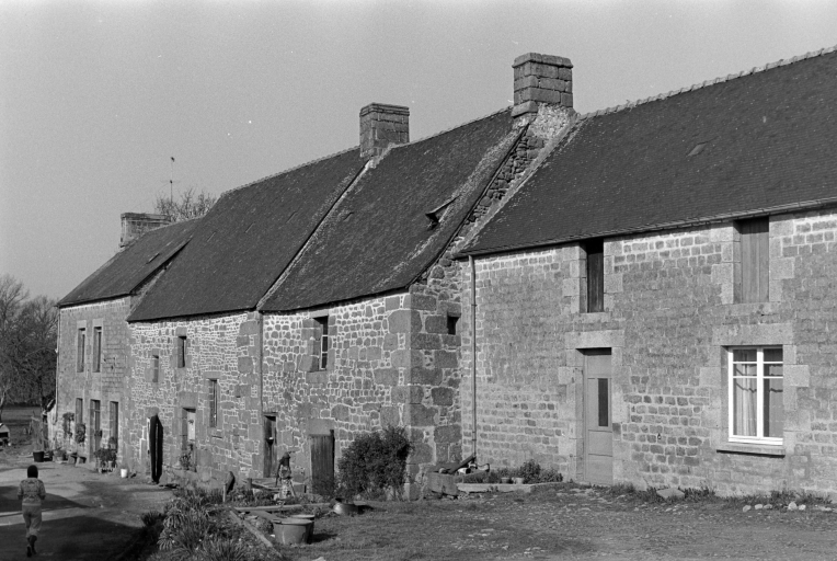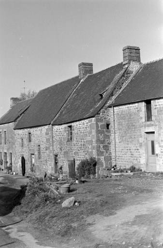 La maison 1 est construite en moellon de granite, tandis que ses encadrements d´ouvertures, ainsi que ses chaînes d´angles, sont en gros appareil régulier de granite. La pente du toit couvert en ardoise est assez forte et a un léger coyau. Elle se composait à l´origine sans doute de deux pièces : une pièce de dépendance à l´ouest avec une seule porte en façade, et une pièce de vie avec une porte et une fenêtre ainsi qu´une cheminée. Cette dernière, en granite, a un linteau monolithe à crossettes, une corniche et ses piédroits sont chanfreinés. Tous ces éléments permettent de dater ce bâtiment du 17e siècle. La deuxième maison, mitoyenne de la première, a été plaquée postérieurement à celle-ci. En effet, la chaîne d´angle de la maison 1 est intégrée à la maison 2. Elle est également construite en moellon de granite avec des encadrements d´ouvertures en grand appareil de granite chanfreiné. Une porte a été percée sur la façade principale à la jointure des deux maisons, elle a un linteau en bois et un peu de brique pour son encadrement. La charpente est ancienne et le toit couvert en ardoise est pentu avec un léger coyau. Cette maison possède une belle cheminée à l´étage à linteau monolithe à crossettes, corniche et piédroits chanfreinés. Les corbelets sont à double ressauts avec un décor de cordon. La base du piédroit est décorée d´un cœur allongé. Cette maison a un plan différent de la précédente. Il s´agit en effet d´une pièce à feu sur une pièce de dépendance, la cheminée se trouvant uniquement à l´étage. L´escalier intérieur à une volée et balustres droites permet d´accéder à l´étage, celui-ci date du 19e siècle. L´étage était également éclairé par une fenêtre située sur le pignon est, celle-ci est chanfreinée. Au-dessus de la pièce à feu se trouve un comble éclairé autrefois par une petite lucarne. Tous ces éléments permettent de dater cette maison également de l'époque du 17e siècle, mais elle est postérieure à la première.