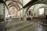 Plan en croix latine, à file de coupoles sur pendentifs, chevet arrondi, style néo-roman. Il reste à signaler dans cette église les peintures sur bois qui couvrent le plafond de la chapelle septentrionale, dédiée à la Sainte Vierge. Ces peintures, oeuvre du 17e siècle, représentent en cinq caissons la grande scène du jugement dernier. Au centre, on voit Jésus exerçant les fonctions de juge souverain des vivants et des morts, et encensé par deux anges. Dans les médaillons latéraux sont saint Etienne agenouillé au milieu des pierres qu'on lui a jetées, et saint Jean-Baptiste avec son agneau, l'un et l'autre suppliant le Seigneur, pendant que des anges sonnent de la trompette pour réveiller les morts ; les deux autres médaillons représentent, l'un les élus dans le bonheur du ciel, et l'autre les damnés refoulés par un ange dans les flammes éternelles. Enfin, aux quatre coins du plafond sont les évangélistes avec leurs emblèmes ; tous les interstices de ce plafond sont occupés par des arabesques très variées.