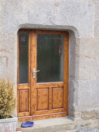 La maison se compose de deux pièces superposées. La façade principale est élevée en grand appareil régulier de granite, tandis que la façade postérieure et les pignons sont en moellon. Le rez-de-chaussée est percé d'une porte chanfreinée en anse de panier avec une accolade sur le linteau et d'une fenêtre qui a été élargie mais qui a conservé son linteau d'origine orné d'une accolade. L'étage est éclairé par une baie aux bords chanfreinés et à l'appui saillant et mouluré, ainsi que par un petit jour au pignon. La façade présente également une belle corniche à modillons et une forte pente de toiture. Une dépendance est accolée à cette maison formant ainsi un grand alignement. Les photographies prises dans les années soixante-dix montrent également une construction en pan de bois et couverte en essentes, il s'agissait vraisemblablement d'un fournil car le bâtiment possédait une cheminée.