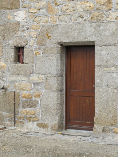 La façade principale est élevée en moellon de granite, tandis que les chaînages d'angles et les entourages des ouvertures sont en grand appareil régulier de granite. Le rez-de-chaussée est percé de deux portes au centre : une porte en plein cintre à double rouleaux et une porte quadrangulaire ; il y a également une fenêtre et un jour. L'étage est percé de deux fenêtres. Toutes les ouvertures sont chanfreinées et le jour est pourvue d'une grille. La maison est couverte d'un toit à longs pans en ardoise, cette toiture présente une forte pente brisée par un coyau. Une dépendance est accolée à cette maison, ainsi qu'un appentis.
