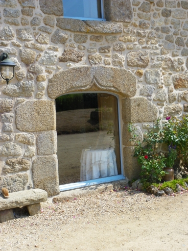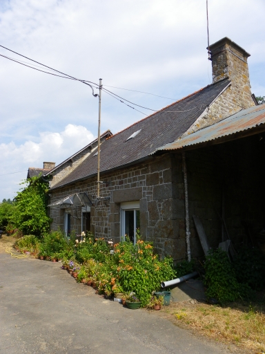 La ferme est composée d'un bâtiment principal au centre complété par deux maisons qui s'appuient sur chaque mur pignon. On compte un rez-de-chaussée et un étage de combles. Le granite est utilisé en maçonnerie, avec de la pierre de taille pour les encadrements et les chaîne d'angle. On trouve deux types de granite, un granite jaune pour les parties anciennes et du granite bleu pour le linteau de la porte nouvelle. Ce sont les encadrements qui portent les décors : chanfreins, accolade sculptée et boules. La façade n'a pas d'organisation particulière, même si les ouvertures sont essentiellement percées sur la partie est du bâtiment, on y trouve notamment une imposte à grille. Les menuiseries ont été entièrement remplacées et les fenêtres et portes vitrées font perdre l'authenticité et le caractère originel de la façade.