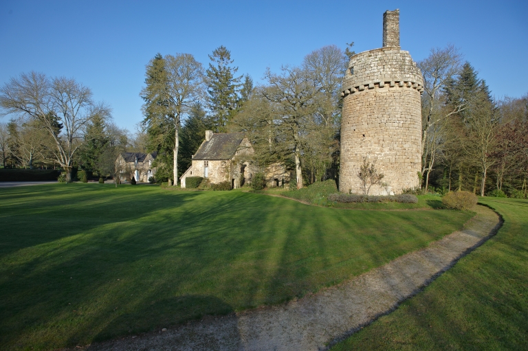 L'ensemble castral, implanté à l'est de l'église Saint-Martin, est composé d'un donjon et de ruines, d'un petit logis, dit Chambre des Coëtlogon, du grand logis, des anciennes écuries et de l'ancienne métairie au nord. Le donjon, implanté au sud du grand logis, au coeur du parc, est doté de trois niveaux. Il est percé de jours d´escalier au nord et de deux fenêtres, une au sud et une au nord. Il est encore couronné de mâchicoulis et d´un mur en surplomb et possède une cheminée. Le grand logis est implanté au nord du parc à l´anglaise et offre sa façade principale au sud. La façade, sobre, est rythmée par six travées de fenêtres sur trois niveaux. Le bâtiment est doté d'un étage carré et de combles mansardés, avec les lucarnes des combles à fenêtres en plein cintre et couronnées d'une boule en granite. Les fenêtres possèdent une croisée en bois reprenant le décor des fenêtres de l'ancien château. Le corps central du bâtiment, en avancée, est percé de deux travées de fenêtres, à arc en anse de panier au rez-de-chaussée alors que les piédroits portent des pilastres. Le fronton, également à arc en anse de panier, est percé de deux oculi ovales, doté d´un cadran solaire et est surmonté d´un pot à feu. L´ensemble de la façade principale est en pierre de taille et couronnée d´une corniche en granite. La toiture, couverte en ardoises est dotée de quatre souches de cheminées, dont deux sur les murs pignons et une sur chaque pan de toiture. Parmi les autres éléments du lieu, on peut noter le pavillon du cocher, à l´est, qui abritait l´écurie et les calèches, ou encore la métairie, au nord du logis. Cette dernière, étaient composée de deux logements. Certaines modifications ont été apportées, notamment la transformation d´une porte en fenêtre. On trouve en décor les éléments traditionnels, notamment la présence de cavet au niveau des encadrements. Un fournil, une grange et une soue à cochons complètent les éléments à vocation agricole de l'ensemble. Les écuries sont composées d'un corps de bâtiment central et de deux ailes en retour d'équerre en façade principale. Chacune de ces ailes est percée d'une porte charretière au rez-de-chaussée et d'une fenêtre à l'étage, organisation qui est reprise pour la partie centrale du bâtiment, la fenêtre de l'étage étant remplacée par une lucarne interrompant l'avant-toit. La toiture, à longs pans, est couverte en ardoise, tandis que les pignons des ailes sont couverts. Cette construction ne dispose pas de décor particulier, mais offre toutefois la particularité d'être agrémentée ici et là de pierres anciennes en réemploi, on trouve notamment les armoiries des seigneurs du Tiercent et une tête sculptée.