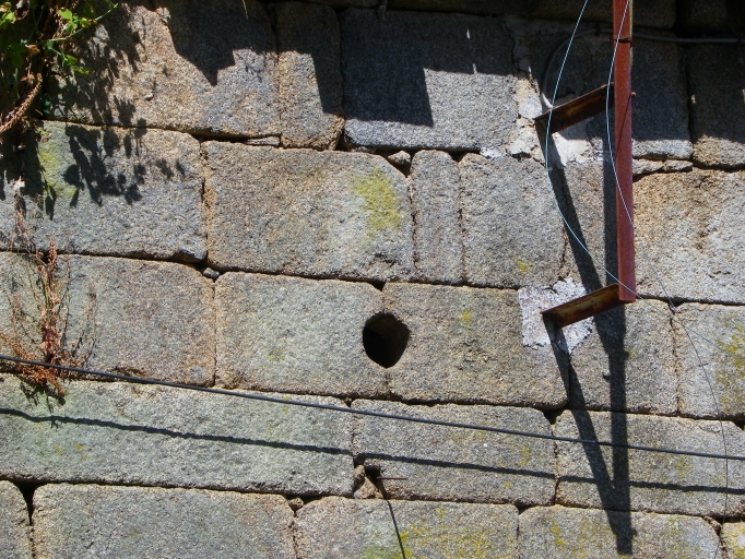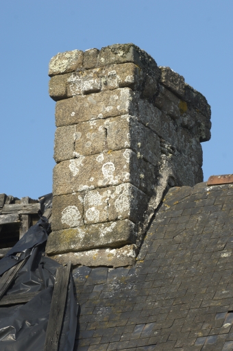 Implantée au nord-ouest de la commune, cette maison est au centre, d'un alignement de trois maisons, leur état sanitaire est inquiétant. La maison possède tous les éléments pouvant la confondre avec une maison noble, même si elle garde également une organisation traditionnelle de la maison rurale, avec une pièce par niveau. La maçonnerie est de qualité, en pierre de taille, la façade principale compte une fenêtre et une porte au rez-de-chaussée et une fenêtre à l'étage. La façade est ornée de décors également de qualité, avec un linteau délardé en accolade sur la porte et une corniche à modillons, modillons que l'on observe également sur la souche de cheminée. La fenêtre du rez-de-chaussée est sans décor, tandis que la fenêtre de l'étage est dotée d'un chanfrein sur les piédroits et le linteau, linteau qui porte également un décor de trois boules. On peut encore noter la présence d'une bouche à feu à l'étage sur cette façade, élément que l'on retrouve au centre de la façade postérieure, également à l'étage. La façade ouest est quasiment aveugle, dotée d'une porte à moitié enterrée au rez-de-chaussée et d'une petite fenêtre rectangulaire. La toiture, en très mauvais état à l'ouest, alterne l'ardoise à l'ouest et la tuile plate à l'ouest. On compte un léger coyau sur chaque versant.