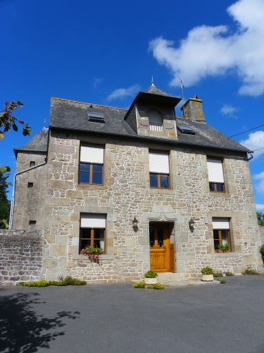 Cet ancien manoir, bien qu'ayant des origines anciennes, puisqu'il remonte à la seconde moitié du 17e siècle, a subi de lourdes modifications qui rendent difficile la lecture complète de l'ancienne organisation. L'ensemble manorial comprenait également une chapelle construite vers le milieu du 17e siècle, remplacée vers 1860 par la chapelle actuelle, dédiée à l'Immaculée Conception. Les travaux les plus importants ont été réalisés au 19e siècle, en modifiant complétement la façade afin de la rendre compatible avec les canons esthétiques de l'époque. On a alors percé trois travées de fenêtres, en modifiant le gabarit des ouvertures, porte et fenêtres. Des éléments anciens ont été réutilisé dans les encadrements, on trouve notamment deux écussons sur les piédroits de la lucarne centrale. On en trouvait un troisième sur le linteau de la porte d'entrée avant de nouvelles transformations à la fin du 20e siècle. Ces dernières ont à nouveau touché aux ouvertures du rez-de-chaussée. La porte a une nouvelle fois été changée et dotée d'un encadrement en granite avec linteau sculpté en accolade.