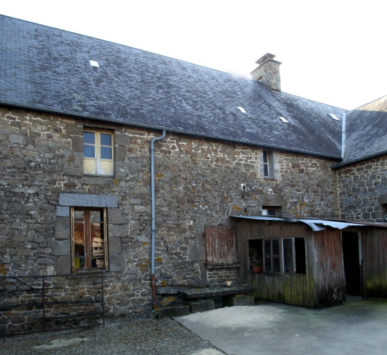 Cette ferme est alignée sur la route départementale 105, au coeur d'un petit écart. L'ensemble est construit en moellons de granite, avec une toiture à longs pans et coyaux, couverte en ardoise. L'élévation compte un étage carré et une travée de fenêtres. On trouvait à l'origine trois portes sur la façade principale, dont une a été détruite et une seconde transformée en fenêtre. Le bâtiment était divisé en trois parties indépendantes, chacune identifiable par une des portes. Chaque porte ouvrait sur une pièce dotée d'une cheminée, les parties centrales et sud étaient également éclairées par une fenêtre à chaque niveau. On ne trouve pas de décor extérieur, les encadrements des ouvertures sont à angles vifs, à l'exception des portes nord et sud qui sont chanfreinées. La fenêtre de l'étage de la partie nord est la seule a avoir conservé une grille en fer forgé.
