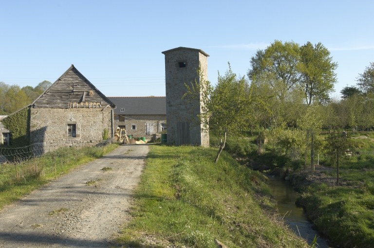 Situé sur les bords du ruisseau de la Hunaudais, ce moulin s'appuie sur la digue de retenue. Le soubassement est maçonné avec un bel appareil de pierre de taille de granite, percé de deux orifices destinés à recevoir les arbres des roues à haubes. Le rez-de-chaussée quant à lui est élevé en moellons de granite. Il est percé d'une fenêtre surmontée d'une croix (19e siècle) sur le mur pignon sud. La façade est possède la porte d'entrée, dont l'encadrement ancien est chanfreiné, ainsi qu'une fenêtre. A l'ouest, une extension en appentis a été élevée, tandis qu'au nord, on trouve encore une porte chanfreinée au niveau du soubassement. La toiture du bâtiment principal est à longs pans et couverte en ardoise.