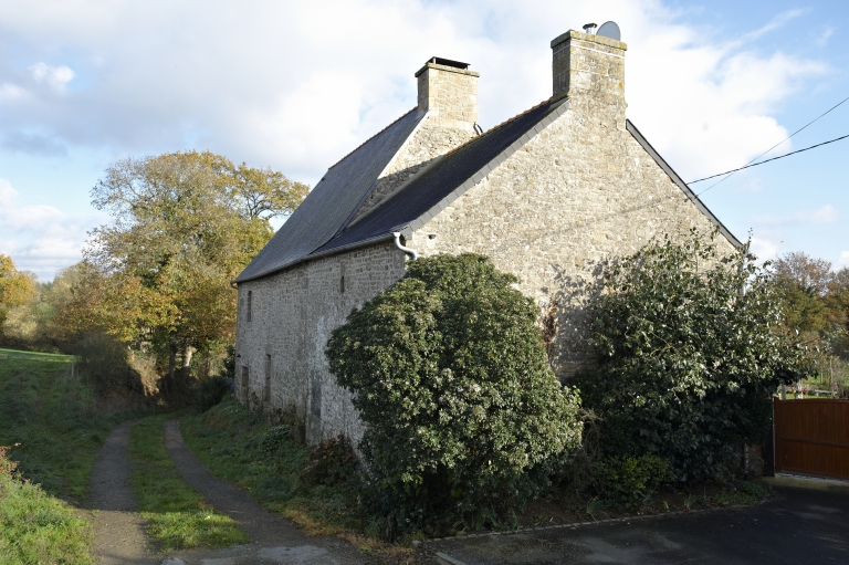 Orientée est-ouest, cette ancienne ferme est percée au rez-de-chaussée d'une porte en plein cintre à double rouleau, agrémentée d'une seconde porte, ouvrant à l'origine sur le cellier, et d'une petite fenêtre à accolade sculptée. L'ensemble est construit en moellons de granite, doté d'une toiture à longs pans et coyau, et couvert d'ardoise. L'étage, quant à lui, comprend une petite fenêtre en meurtrière qui éclairait certainement l'ancien escalier, aujourd'hui disparu, et deux fenêtres. La façade postérieure propose une porte chanfreinée accompagnée d'une fenêtre au rez-de-chaussée, complétée par une seconde fenêtre à l'étage.