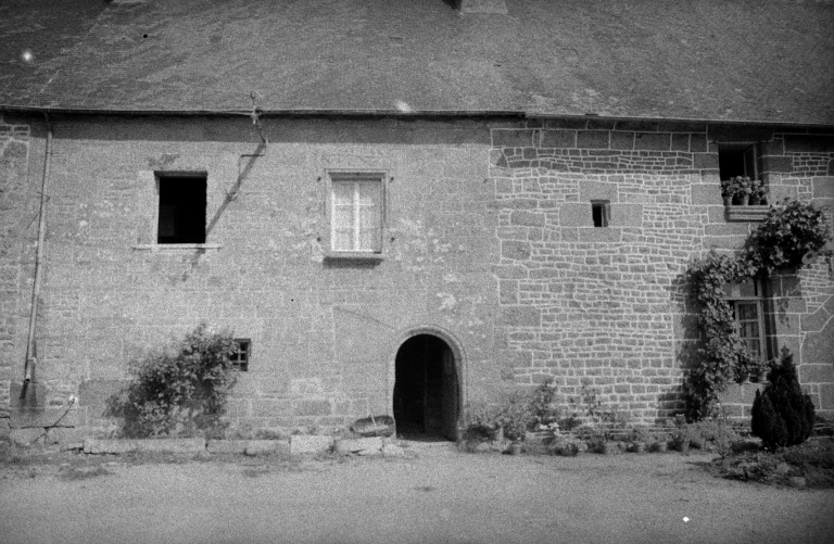 Implanté en retrait de la RD 98, le manoir est orienté est-ouest et présente donc sa façade principale au sud. Il était doté à l'origine d'un mur de clôture dont il reste une porte piétonne et les piédroits de l'ancien portail, qui a été élargi depuis. Le manoir originel s'est vu augmenté d'une seconde maison, mitoyennement, à l'ouest. La maçonnerie est composé majoritairement de pierre de taille de granite, complété par du moellon ici et là. Cette dernière possède les éléments de décors les plus intéressants. Sa façade typique, possèdait la porte d'entrée en plein cintre à double rouleau et une fenêtre au rez-de-chaussée, ainsi qu'une fenêtre pour l'étage. Une seconde fenêtre a été percée à l'étage. La fenêtre de l'étage a conservé l'appui de fenêtre en cavet, le linteau droit porte un décor végétal et animal stylisé, tandis que l'encadrement est doté de moulures. La partie orientale de l'ensemble a une façade au traitement différent, avec une maçonnerie de moellons de granite complétée par de la pierre de taille dans la partie supérieure du mur et la corniche en cavet. La façade est percée de nombreuses fenêtres, la désorganisant quelque peu. A l'origine, on comptait deux portes en plein cintre à double rouleau complétée chacune d'une fenêtre. La porte la plus petite a été rehaussée, supprimant ainsi le linteau en plein cintre, tandis que la fenêtre adjacente a été agrandie. Du point de vue de l'organisation intérieure, on trouve deux pièces principales, avec une pièce à feu à l'ouest, servant aujourd'hui de chambre et une seconde pièce à l'est, servant de cuisine. Elle possède également une cheminée sur le mur pignon est, mais a certainement été ajoutée, le traitement de la souche de cheminée étant différent, que ce soit dans le volume comme dans le décor mouluré qu'elle porte. Entre ces deux pièces, on trouve un espace cloisonné composé de deux parties, un sas d'entrée suivi dans le même axe d'un espace aveugle. Les décors se concentrent sur les encadrements, avec des chanfreins en cavet et un appui de fenêtre mouluré à l'étage. L'étage compte trois fenêtres et une petite ouverture, éclairant certainement l'ancien escalier. La façade postérieure est dotée d'une aile en retour d'équerre, à un étage, percée à l'ouest d'une porte en plein cintre et d'une fenêtre au premier niveau et d'une seconde fenêtre à l'étage. La communication avec la maison se faisait par une porte en plein cintre, aujourd'hui murée.