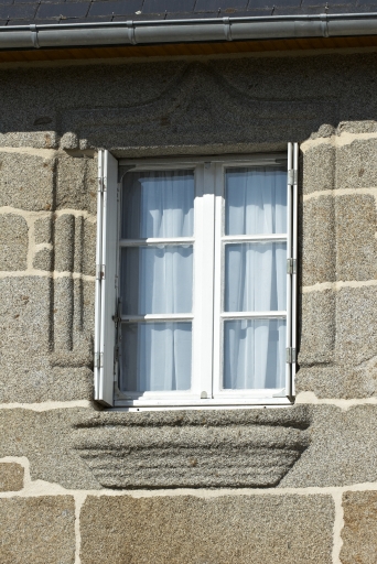 Construite au 16e siècle, cette maison a vu sa façade en partie reconstruite au 20e siècle après la chute du mur. Elle a toutefois conservé les éléments de décors particulièrment intéressants qu'elle disposait à l'origine. La différenciation entre les deux périodes de construction se fait aisément au regard de la différence de mise en oeuvre de la maçonnerie. La partie ancienne est en effet dotée de pierre de taille typique, alors que la partie refaite, à l'ouest, utilise le moellon et même des éléments en granite bleu. La fenêtre centrale a été élargie tandis que la fenêtre à l'est a été percée certainement lors de la reconstruction du mur.