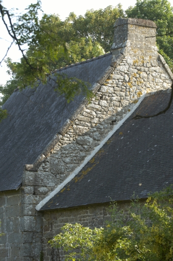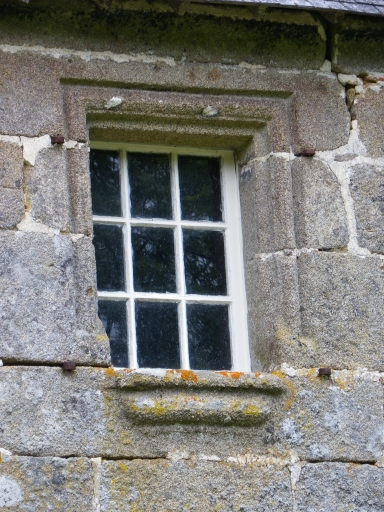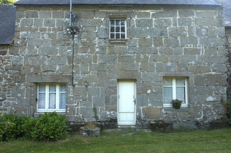 Cette maison est mitoyenne d'une ancienne ferme à l'ouest, formant un petit alignement orienté est-ouest, l'édifice présente donc sa façade principale au sud. La maçonnerie est constituée de pierre de taille de granite en façade principale et de moellon sur les murs pignons et la façade nord. On compte un étage carré éclairé par une fenêtre qui présente les principaux éléments de décors, à savoir des moulures au niveau de l'encadrement et de l'appui. La façade nord était également percée à l'étage d'une fenêtre chanfreinée, aujourd'hui bouchée. Le rez-de-chaussée comprenait deux portes et une fenêtre, avec une porte en plein cintre modifiée. La porte centrale ouvrait sur une pièce à feu, tandis que la seconde porte desservait le cellier. Les deux pignons sont découverts, même sil celui du pignon est est beaucoup mieux conservé, présentant une forme en demi rond.