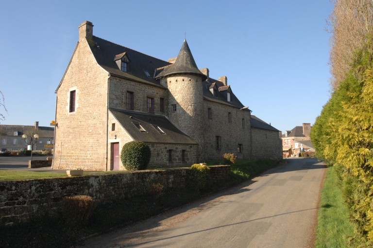 L'actuelle Mairie, ancien presbytère, est une construction du 17e siècle, qui porte d'ailleurs les dates de 1645 sur un linteau de la partie occidentale, 1674 sur une pierre de la chaîne d'angle sud-est et 1678 sur la tour d'escalier de la façade postérieure. Elle a subi d'importantes modifications par le percement de nouvelles fenêtres au 19e siècle et la mise en place de lucarnes dans le dernier quart du 20e siècle. La partie est peut être clairement identifiée comme étant du 17e siècle, elle porte les décors classiques des bâtisses de cette époque, comme les chanfreins sur les encadrements ou la porte en plein cintre à double rouleau. La partie ouest, quant à elle, a vu sa façade sud remontée après 1850, puis encore reprise postérieurement, avec la modification des ouvertures. L'extension ouest, l'ancien patronage, bien que modifiée à la toute fin du 19e siècle ou au début du 20e siècle, possède un linteau portant la date de 1645 et une inscription indiquant le nom du constructeur, Julien Begasse, recteur de Saint-Hilaire-des-Landes.