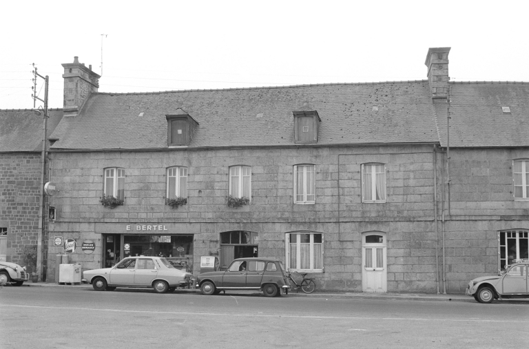 Comme la grande majorité des maisons de village du bourg de Saint-Hilaire, cette maison à boutique s'inscrit dans un alignement, au sud de la route principale qui traverse le village. Elle présente donc logiquement sa façade principale au nord, alignée sur la route. Elle était dotée à l'origine d'une belle façade en pierre de taille de granite, rythmée par cinq travées de fenêtres (il n'en reste plus que trois). Les ouvertures étaient toutes dotées de linteaux délardés en arc segmentaire, les gabarits des ouvertures du rez-de-chaussée étant plus importants que ceux de l'étage. On devait trouver une fenêtre et une porte de chaque côté de la porte d'entrée principale au centre de la maison. Ici encore, la sobriété est de rigueur, on ne trouve qu'un bandeau de granite, démarquant le rez-de-chaussée de l'étage, et une petite niche qui agrémentent la façade. Les seuls décors se retrouvent sous forme de moulures sur les corniches des souches de cheminée. La toiture est à longs pans et légers coyaux, elle comporte en outre deux petites lucarnes.