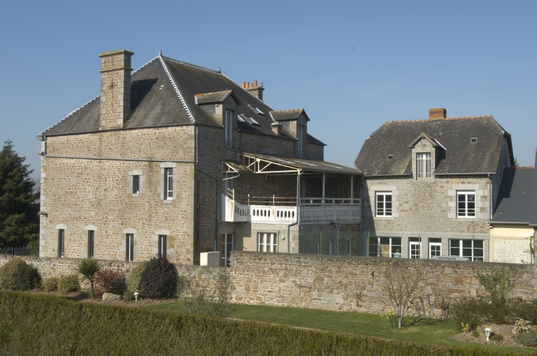 Cette demeure est implantée à l'ouest du bourg, route de Baillé, près de l'école privée. Elle a été construite en retrait de la route, isolée sur sa parcelle, séparée de la route par un mur de clôture. Elle possède un plan rectangulaire et est remarquable par ses volumes importants. Du point de vue de l'élévation, elle est dotée d'un rez-de-chaussée surélevé sur cave, d'un étage carré et d'un étage de comble. Le rez-de-chaussée est accessible par un escalier droit à double volée, parallèle à la façade. Chaque niveau est marqué en façade par la présence d'un bandeau de granite mouluré, tandis qu'en soubassement et qu'au niveau des combles on observe un décor de maçonnerie en opus incertum tranchant avec les moellons assisés du reste de l'édifice. La façade sud propose trois travées de fenêtres, poursuivies pour deux d'entre elles par deux lucarnes au niveau des combles. Les ouvertures sont toutes à linteau en arc segmentaire. L'étage est marqué par une porte fenêtre centrale, précédée d'un petit balcon à garde-corps en ferronerie, matériau que l'on retrouve sur les autres gardes-corps des ouvertures des étages. La façade est couronnée d'une corniche en granite bleu. La toiture, à longs pans et croupes, est couverte en ardoise et compte deux lucarnes interrompant l'avant-toit, dotées d'un fronton triangulaire. Les deux souches de cheminées sont hautes du fait de la présence des croupes en toiture.
