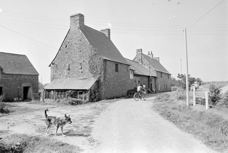 Cette ferme s'inscrit à l'ouest d'un grand alignement de cinq maisons anciennes. Composée de deux propriétés, l'ensemble est toutefois équilibré et a été élevé d'un seul tenant, comme l'indique la cohésion entre les deux éléments de la maçonnerie en moyen appareil de granite. La maison ouest a une façade de type ternaire, avec une porte et une fenêtre au rez-de-chaussée et une fenêtre à l'étage, formant une travée avec la fenêtre inférieure. Elle a en outre conservé sa façade originelle et même une grille en fer forgé protégeant la fenêtre du rez-de-chaussée. Elle est dotée d'une pièce et d'une cheminée par niveau, appuyées sur le mur pignon ouest. L'accès à l'étage se fait aujourd'hui par une échelle installée à l'angle nord-est. La façade postérieure compte une porte au rez-de-chaussée et une fenêtre à l'étage. Sa voisine compte deux fenêtres flanquant la porte d'entrée centrale au rez-de-chaussée et une fenêtre à l'étage formant une travée avec la porte. On trouve en outre une petite fenêtre à chaque niveau, dont une éclaire la cage d'escalier. La façade postérieure est percée d'une porte et d'une fenêtre au rez-de-chaussée, ainsi que d'une fenêtre au centre de l'étage. L'ensemble est couvert en ardoise et doté de trois souches de cheminées massives, mais seulement deux sont destinées à la ferme. Les décors se concentrent d'ailleurs sur ces souches de cheminée, avec des corniches moulurées.