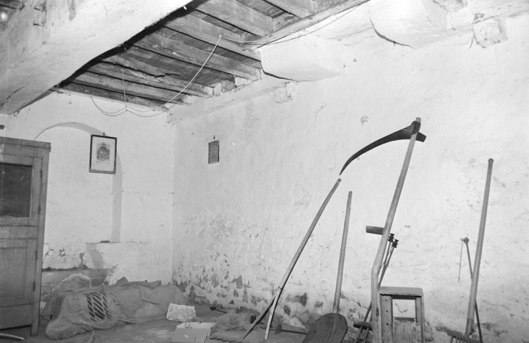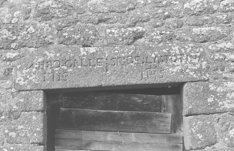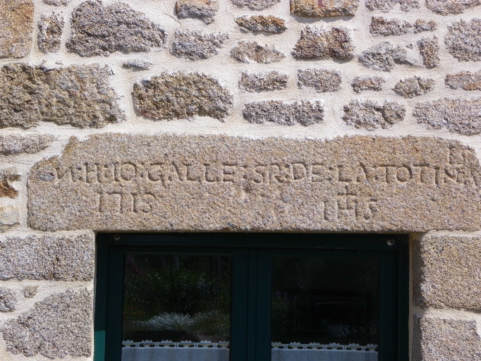 Cette ancienne ferme est composée de deux anciennes maisons, offrant leurs façades principales au sud, elle est quelque peu isolée au sud de l'écart. La partie ancienne, à l'ouest, alterne une maçonnerie en moellon et pierre de taille, la pierre de taille étant réservée aux chaînes d'angle et aux encadrements de fenêtre. De type ternaire, la façade sud possède un décor au niveau de la porte d'entrée, avec une accolade sculptée surmontée d'une croix. On trouve également des décors de boules au niveau de la corniche de la souche de cheminée, ainsi qu'une corniche à modillons au sud. Comme souvent dans les maisons rurales, on trouve une pièce par niveau, chauffée par une cheminée à chaque niveau. Au rez-de-chaussée, la cheminée s'appuie sur le pignon ouest, tandis qu'elle se trouve sur le pignon opposé à l'étage. La cheminée du rez-de-chaussée est ornée d'un calice sur le linteau. L'accès à l'étage se fait par le biais d'un escalier en vis en granite implanté à l'angle sud-ouest de la maison, il comporte dix marches. Il est éclairé par un petit jour percé entre les deux niveaux. On trouve également, niché dans le mur nord, un évier en granite, mur qui n'est percé que d'une petite fenêtre à l'étage. La seconde maison porte l'inscription : N : H : IO : GALLE : SR : DE : LA : TOTIN 1713 IHS, sur le linteau de la porte d'entrée. Sa façade est également ternaire et la maison compte un étage. A la différence de la précédente, les ouvertures ne possèdent pas de chanfreins, et la façade possède une travée de fenêtres, travée qui est reprise en façade nord. On trouve ici également une pièce par niveau, avec une cheminée au rez-de-chaussée. Les décors sont plus rares extérieurement et se limitent à une corniche en cavet sur la façade sud. L'ensemble possède une toiture à longs pans et est couvert en ardoise.