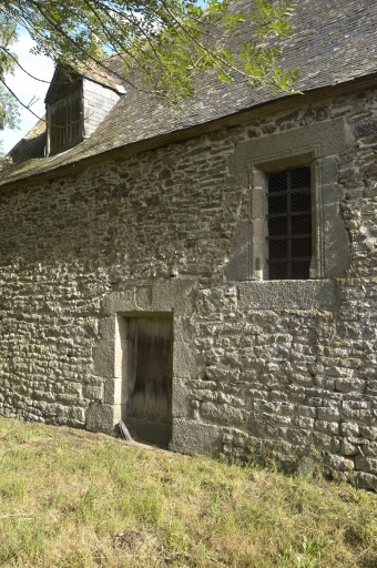 La Sécardaye est un édifice construit entre cour (au nord) et jardin (au sud). Autour de la cour s'organisent les éléments bâtis qui composent l'ensemble : au sud, le corps de logis principal ; côté ouest, les anciennes écuries, retraite à porcs, menuiserie ; côté est, les anciennes écuries ; au nord-est la chapelle ; au sud de la demeure, le jardin. Le logis est construit selon un plan rectangulaire massé avec un avant et un arrière-corps central. Il s'élève sur un étage carré surmonté d'un comble mansardé. Le gros oeuvre est en moellon de granite régulièrement assisé, les encadrements des baies en pierre de taille de granite. Les chaînages d'angle sont double, alternant moellon et pierre de taille de granite, mise en oeuvre caractéristique du pays de Fougères. La toiture à la Mansart, couverte en ardoise, est sommée d'un campanile de charpente placé au centre de la ligne de faîtage. De hautes souches de cheminées sont disposées en symétrie, deux sur chaque pignon, deux de part et d'autre de la lucarne centrale. Appareillées avec soin, pierre de taille et moellon dessinent un quadrillage et l'extrémité de la souche est moulurée. Les élévations principales sont toutes deux rythmées de cinq travées, selon une disposition identique, sans être totalement symétriques dès l'origine. Toutes les baies, y compris celles des lucarnes en bois, sont en arcs segmentaires. L'élévation antérieure nord, au fond de la cour d'honneur, bénéficie d'une mise en œuvre plus soignée que l'élévation postérieure sud, sur jardin. Le décor porté reste toutefois très sobre, résumé, outre le bandeau d'étage, aux moulurations que présentent l'avant-corps central. Ce dernier comporte la porte d'entrée dont l'encadrement, souligné d'une plate-bande légèrement saillante, est agrémenté d'une épingle au centre de l'arc. La menuiserie à double battant et l'imposte vitrée sont conservées. L'encadrement de la fenêtre haute qui surmonte la porte est traité pareillement à celui de la porte et son seuil mouluré, saillant, reçoit un balconnet de ferronnerie. L'élévation postérieure, sans décor porté, conserve, dans l'arrière-corps central, la porte d'entrée à double battant et imposte vitrée. Une modification lui a été apportée par la transformation d'une fenêtre en porte vitrée, sans doute au 19e siècle. Les pignons sont symétriques dans leurs percements, au second niveau et à l'étage mansardé : une fenêtre surmontée d'une lucarne en bois est placée entre les deux conduits et souches de cheminées. A l'ouest, une porte donne accès direct à une petite cour depuis l'office. A l'est, un petit bâtiment de plan rectangulaire étroit et haut, coiffé en bâtière, servait de niche à chiens. La distribution intérieure reste inchangée depuis le 18e siècle, quel que soit l'étage. Au rez-de-chaussée, cinq pièces se répartissent de part et d'autre d'un vaste couloir central habillé de lambris d'appui établi au 19e siècle. Le couloir est ouvert au nord sur la cour, au sud, sur le jardin, et contient, dans l'angle sud-est, un escalier tournant à quatre volées, en bois, aux balustres de plan carré, qui dessert les étages jusqu'aux greniers. Dans la partie orientale se placent deux salles à feu ouvertes sur le vestibule par deux portes à double battant. Ces pièces, salle à manger au nord et salon au sud, communiquent entre elles par une porte également à double battant. Le salon a un accès direct au jardin par une porte-fenêtre. Il conserve ses lambris de hauteur chantournés, de simple facture, ainsi que deux grandes toiles peintes marouflées (18e siècle) sur les panneaux de la cloison est-ouest, de part et d'autre de la porte de communication avec la salle à manger. Ces toiles qui représentent des scènes champêtres ont souffert des effets de la lumière solaire et leurs couleurs se sont quelque peu fanées. La salle à manger correspond sans doute à la pièce désignée, en 1795, comme étant sans boiserie. Les lambris de hauteur et le décor des piédroits de cheminée datent des années 1820-1830. Une armoire murale occupe le mur est. Deux toiles de couleur sépia (19e siècle) sont marouflées sur les panneaux de la cloison, de part et d'autre de la porte de communication avec le salon. Elles représentent des scènes de chasse et une nature morte animalière. Dans la partie occidentale, on trouve la cuisine au nord, l'arrière cuisine ou office au sud. La cuisine conserve une cheminée monumentale au linteau monolithe, à crossettes. A droite de celle-ci, un évier de pierre. Le puits, signalé en 1795, est aujourd'hui condamné : un cercle maçonné en désigne l'emplacement. Au premier étage, quatre chambres avec antichambre et un bureau : deux chambres et le bureau entre elles, dans la partie nord ; deux chambres, de part et d'autre de l'arrivée de l'escalier, dans la partie sud. Les pièces n'ont sans doute jamais été revêtues de boiseries. Un élément retient l'attention : un secrétaire mural de facture 18e siècle, dans le bureau. L'étage mansardé est resté non aménagé et sert de grenier. Les deux chambres prévues à l'ouest sont munies d'une cheminée destinée à être habillée de boiseries. La chapelle : Datée de 1608, par inscription portée sur le linteau de la porte occidentale, l'aspect architectural de la chapelle l'apparente pourtant à la fin du 15e siècle. Compte tenu des nombreux remplois, il s'agit peut-être d'une reconstruction. De plan rectangulaire, la chapelle est coiffée en bâtière. Les pignons est et ouest sont sommés d'une croix qui surmonte, à l'ouest, une petite chambre de cloche. Les rampants sont lisses. La porte d'entrée ouest, en plein cintre mouluré, peut être un remploi des 15e-16e siècles. Au sud, la porte rectangulaire et la petite fenêtre placée à l'est, de dimensions courantes au 17e siècle, très ébrasées à l'intérieur de l'édifice, so