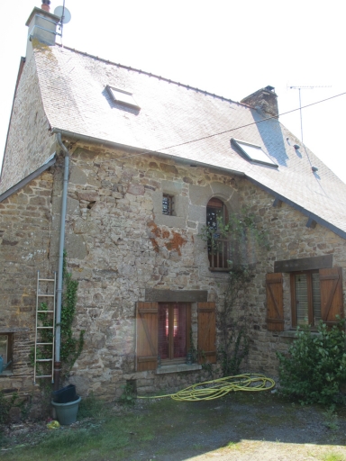 La façade présente trois fenêtres d'origine, dont une avec un linteau mouluré décoré d'une accolade incisée, surmontée d'une fleur de lys. Quant au rez-de-chaussée ce qui est aujourd'hui la porte d'entrée était autrefois une fenêtre, la partie supérieure montre encore les traces des barres de grilles. Le rez-de-chaussée comportait deux pièces séparées par une cloison de bois, une pièce avec un vaisselier (grande niche en plein cintre) et une salle. La cheminée est monumentale, entièrement en granite. A l'étage où l'on pénétrait par un escalier extérieur en pierre, droit, non couvert, et plaqué sur la façade, il y avait une salle unique aux poutres travaillées, et possédant une fenêtre à coussièges (bancs de pierre installés dans le large ébrasement de cette baie). Cette pièce possédait également une cheminée en granite. Au sud-est, l'étage était éclairé par une fenêtre moulurée à appui saillant. Une corniche en granite en quart de rond souligne le toit. Devant la façade sud de cette maison, sous une même toiture sont trois grandes pièces contiguës, toutes semblables possédant chacune une cheminée, simple console avec linteau de bois.