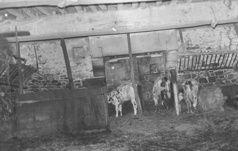 Situé non loin de la chapelle, se trouve un alignement de deux logis très intéressant. En effet, ces deux logis remontent à la fin du 16e siècle ou au début du 17e siècle, cette datation est possible grâce aux éléments d'architecture suivants, caractéristiques de cette époque : porte en plein cintre, petite fenêtre à grille, fenêtre à appui saillant à l´étage, cheminées monumentales en granite avec piédroits chanfreinés et visages sculptés. La pièce située à l´étage de la maison la plus haute est éclairée par deux fenêtres, une sur chaque façade, celle de la façade arrière est ornée d´une très belle grille. La cheminée est également très intéressante notamment parce qu´elle est décorée de quatre visages sculptés. Actuellement désaffectées, les deux maisons sont associées en alignement. Chacune renferme une pièce de logis au-dessus de celle du rez-de-chaussée et un grenier au-dessus d'une étable. Prises séparément, elles sont d'un intérêt inégal. Plus longue et plus haute, la première maison possède aussi sur sa façade antérieure des baies à effets décoratifs moulurées en cavet (porte en plein cintre et fenêtre rectangulaire à grilles du rez-de-chaussée), et appui saillant (fenêtre-gerbière de l'étage). C'est également cette maison qui possèdent la cheminée d'étage aux quatre visages sculptés, exemple unique sur la commune.
