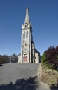 L'église de Saint-Aubin-du-Cormier est citée dès 1025 comme une possession de l'abbaye de Saint-Florent de Saumur. D'autres bâtiments religieux proches dépendaient également de cette abbaye ; c'est notamment le cas de l'ancien prieuré de Livré-sur-Changeon. Cette première église de Saint-Aubin-du-Cormier devient paroissiale lors de la création de la ville en 1225 ; les marquis de la Dobiaye en Saint-Jean-sur-Couesnon y possédaient une chapelle prohibitive. Cette église primitive, Saint-Malo-de-Bécherel, située au lieu-dit Bécherel (sud-est du château), est transférée en 1730 dans la chapelle seigneuriale qui se trouvait sur la Place Alexandre Veillard actuelle pour cause de ruine imminente. Cette chapelle seigneuriale était composée d'une simple nef à laquelle deux chapelles avaient été ajoutées au sud. Elle présentait une porte en arc brisé et une rose du 14e siècle ; la fenêtre du chevet possédait un vitrail représentant le Jugement Dernier et datait du début du 16e siècle. Elle était semble-t-il dédiée à Notre-Dame, alors qu'une chapelle Saint-Aubin construite dans les années 1430 se trouvait dans l'enceinte même du château. La tour qui se trouve toujours actuellement sur la Place Alexandre Veillard a été édifiée en 1764, peu de temps après la conversion de la chapelle seigneuriale en église paroissiale. Elle était située au sud de la nef et remplaçait l'ancien clocher tombé en ruines. Cette tour servait probablement de clocher à l'église qui a été détruite peu de temps après la construction d'un nouvel édifice religieux un peu plus au nord. Cette tour a ensuite été convertie en beffroi. Le presbytère se trouvait au 17e siècle au lieu-dit Bécherel, sur sa porte, étaient gravées la date de 1680 ainsi que les armoiries du roi. L'église actuelle a été reconstruite entre 1899 et 1902 par l'entrepreneur Richer sur les plans de Henri Mellet. Cet architecte, natif de Vitré, a construit de nombreux édifices religieux dans le département à la fin du 19e siècle (chapelle de la Peinière, église de Janzé, église de Saint-Etienne-en-Coglès, église Saint-Martin de Vitré...). Cette église a été reconstruite à quelques mètres au nord de l'ancienne, qui était devenue trop petite. Le cabinet Mellet présente les premiers plans en 1889. L'église, de style romano-byzantin, est bénie le 21 décembre 1902. Le propre de l'architecture du cabinet Mellet est de faire référence à de multiples styles architecturaux du passé ; cette église illustre cette habitude car, on y retrouve des sortes de tourillons en façade sud qui font référence au style roman poitevin ou encore, sur la même façade, un fronton triangulaire orné de modillons qui rappelle l'architecture néo-classique du début du 19e siècle. Par ailleurs, l'abside est percée de fenêtres en plein cintre qui évoquent également l'art roman, alors que l'intérieur est couvert des voûtes sur croisées d'ogives si caractéristiques de l'architecture religieuse gothique. Le chevet de cette église est très comparable à celui de l'église paroissiale Saint-Etienne de Saint-Etienne-en-Coglès réalisée par le même cabinet d'architectes. Cet édifice n'est pas orienté, au contraire des autres églises qui possèdent généralement un choeur à l'est, tourné vers la ville sainte de Jérusalem. Il est logique d'imaginer que la reconstruction d'un tel édifice en milieu urbain au début du 20e siècle soit la cause de cette "désorientation". L'édifice est précédé d'un perron dont les marches sont composées de réemplois d'anciennes pierres tombales. Le mobilier est contemporain de la construction de l'église sauf quelques rares éléments qui sont plus anciens que l'édifice ; comme l'orgue situé dans le bras ouest du transept. Le maître-autel a été donné en 1902 par le Père Jean-Evangéliste-Marie DUVER, curé de Saint-Germain de Rennes. Il est également le commanditaire de la chapelle Saint-Denis construite à la fin du 19e siècle dans le cimetière.