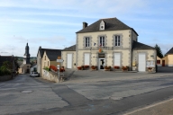 Ce bâtiment possède une maçonnerie composée de moellon équarri de grès. Les chaînages d'angles, les encadrements de baies et les bandeaux sont traités en granite au rez-de-chaussée et en pierre calcaire dans les niveaux supérieurs. La toiture est composée de trois parties : deux toitures à croupes latérales et une toiture centrale en pavillon. Le tout est couvert d'ardoise. Le bâtiment s'élève sur trois niveaux : un rez-de-chaussée, un premier étage et un comble. Les façades est et ouest sont scandées de cinq travées, alors que le pignon nord est rythmé par deux travées seulement. Les baies possèdent toutes des linteaux très légèrement cintrés. Un fronton semi-circulaire en pierre calcaire surmonte la travée centrale. Il porte l'inscription "MAIRIE" dans un cartouche bordé de pilastres cannelés courbes. Au-dessus de ce cartouche, est inscrite la date de 1870 dans un médaillon surmonté d'une coquille et sous lequel se trouve une guirlande de fruits et de fleurs.
