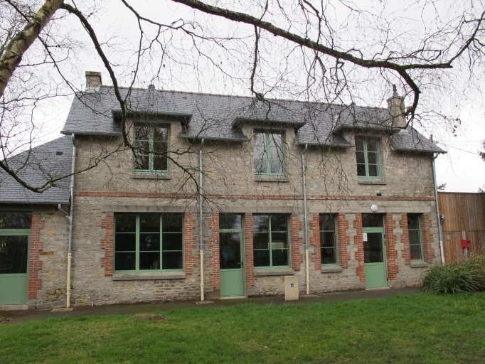 La maçonnerie de ce bâtiment est composée de moellon équarri de grès ; les chaînages d'angles, encadrements de baies et bandeaux sont quant à eux réalisés en brique et brique polychrome. Le bâtiment possède un plan au sol en "T" ; il est couvert de toitures à demi-croupes et à longs pans recouvertes d'ardoise. Les baies du rez-de-chaussée ont des linteaux en métal ornés de fleurs, tandis que celles du premier et second étages possèdent des linteaux en arc segmentaire. La façade principale vue de la rue Leclerc est la plus soignée, en dehors de l'utilisation de briques polychromes pour créer des motifs, on emploie également des éléments décoratifs en terre cuite vernissée.
