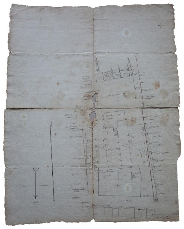 Le départ d’un autre porche semble avoir été dessiné sur le plan de 1798 au niveau de la parcelle n°234 du cadastre de 1833. Entre 1833 et 1856, la façade a été rectifiée pour s’aligner avec les deux maisons précédentes au nord.