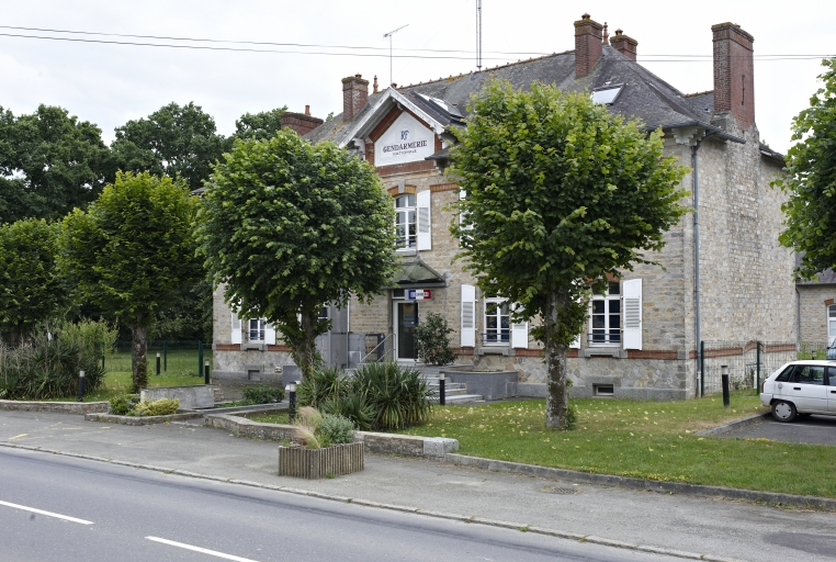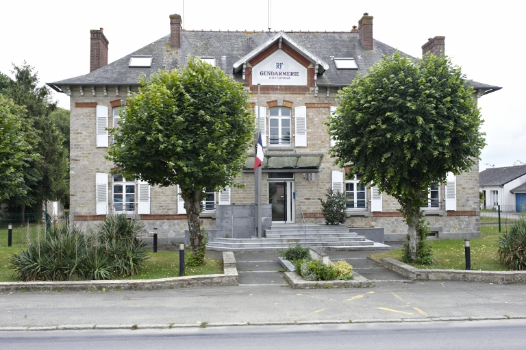 Cette gendarmerie est du même type que d'autres gendarmeries construites dans le département au début du 20e siècle, notamment celles d'Argentré-du-Plessis ou encore de Bruz. On retrouve en effet ici le très fréquent fronton triangulaire central. La toiture à croupes, l'usage de la brique comme élément de décor (linteau de baies, bandeaux...) ou encore l'appareillage différent selon les niveaux (soubassement en moellon à tête dressée et reste de l'édifice en moellon équarri) sont des éléments propres à l'architecture du début du 20e siècle.