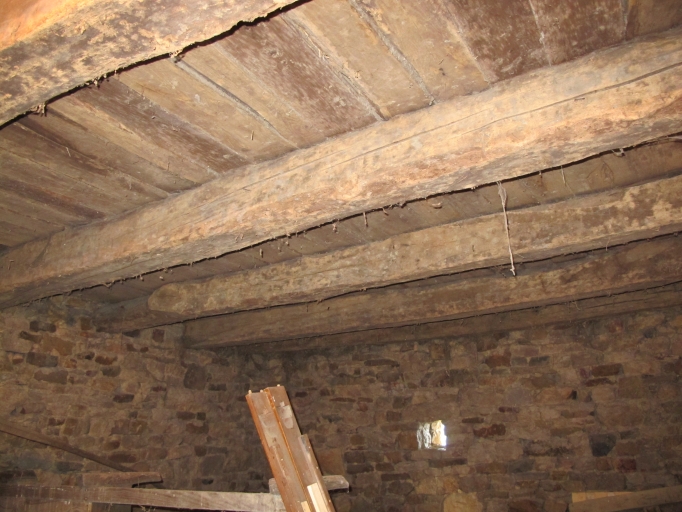 En 1833, lors de la réalisation du premier cadastre de la commune, ce bâtiment était divisé en trois propriétés différentes. Les différences de propriétés sont encore visibles aujourd'hui car les trois parties ne possèdent pas la même pente de toiture. La partie centrale porte en façade sud, sur le linteau de l'une des baies du rez-de-chaussée, l'inscription IHS associée à la date de 1685. Les trois logis datent peu ou prou de la même époque ; ils présentent en effet les caractéristiques de l'architecture de la fin du 17e siècle. Ainsi, ils possèdent des pentes de toiture accentuées avec un coyau, une poutraison de forte section et la cheminée du rez-de-chaussée de la partie centrale présente un corbeau à deux ressauts. Alors que les parties latérales ne peuvent avoir abrité qu'un logis, composé d'une pièce à feu au rez-de-chaussée surmontée d'un grenier, la partie centrale semble avoir abrité une ferme. Ainsi, la pièce à feu se trouvait en partie est alors que la partie ouest, sans feu, était probablement réservée à une dépendance : cellier ou bien étable. La pièce de vie et la dépendance étaient surmontées d'un grenier.