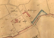 Tableau d'assemblage du plan parcellaire de la commune de Saint-Jean-sur-Couesnon, Canton de Saint-Aubin-du-Cormier, Arrondissement de Fougères, Département d'Ille-et-Vilaine. Terminé sur le terrain le 20 juin 1833, sous l'administration de Mr. Cahouet, Préfet, Mr Froc, Maire et sous la direction de Mr Lambert, Directeur des Contributions, Mr Lesné, Géomètre en chef, par Mr Viel, Géomètre de 1ère classe, échelle 1/10000e. (A.D. Ille-et-Vilaine).