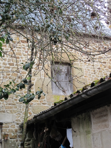 En 1833, lors de la réalisation du premier cadastre de la commune, ce bâtiment se trouvait déjà dans l'alignement de constructions situé au sud de l'église. Les caractéristiques de l'architecture de ce bâtiment évoquent une construction de la fin du 17e ou du début du 18e siècle. La forte pente de toiture, l'existence d'un coyau, le fait que certaines baies de la façade sud possèdent un encadrement chanfreiné ainsi que la forme de la cheminée de la salle correspondent à des éléments propres à cette époque en architecture. Les baies de la façade sud ont été quelque peu remaniées. La distribution d'origine de ce bâtiment a assez peu évolué, ainsi, seuls quelques cloisonnements internes en bois et le coffrage des plafonds à la française (poutres et solives) sont intervenus, vraisemblablement au cours de la première moitié du 20e siècle. Le bâtiment était divisé en deux pièces par niveau, séparées par la cage d'escalier située en partie centrale. La partie ouest du rez-de-chaussée était occupée par la salle possédant une cheminée sur le mur ouest. Cette cheminée monumentale en granite existe toujours actuellement. La partie est du rez-de-chaussée était occupée par une dépendance (cellier) ainsi que nous l´a rapporté la tradition orale. Un escalier droit central desservait l'étage, où se trouvait une chambre à l'ouest, au-dessus de la salle ; les cheminées de ces deux pièces étaient superposées. La partie est de l'étage n'était occupée que par un grenier. L'existence d'une ferrure sur l'encadrement de la porte centrale de la façade sud atteste de l'existence d'un husset (panneau de bois situé devant la porte destiné à éviter l'intrusion des animaux dans le bâtiment). De plus, à l'étage de cette façade, un jour est percé ; il était probablement destiné à l'éclairage de la montée de l'escalier. L'une des fenêtres de l'étage, à l'est, possède encore un encadrement chanfreiné, caractéristique de l'architecture du 17e siècle. La tradition orale nous a rapporté que ce bâtiment abritait un bureau de tabac au cours du 20e siècle, cette fonction commerciale n'est absolument pas étonnante eu égard à la position centrale de ce bâtiment dans le village.