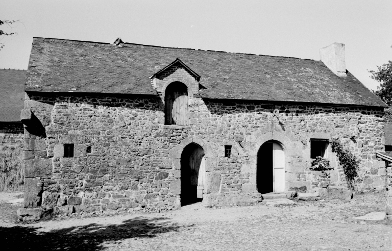 Cet ensemble est composé de différents bâtiments élevés en moellon de granite et couverts d'ardoise. Les encadrements de baies d'origine sont réalisés en pierre de taille de granite. Certaines autres baies, reprises après la construction des bâtiments, présentent des encadrements en granite bleu et en brique. La façade sud de l'ancien alignement situé au sud-est est percée de baies d'une grande qualité : porte en plein cintre à doubles rouleaux, porte en arc brisé, fenêtre à encadrement possédant un cavet. Les linteaux de certaines baies de l'ancien alignement situé le plus au nord portent certaines inscriptions. L'un des linteaux porte en effet la date de construction du logis à savoir 1669 ; le linteau de la porte témoigne du monogramme du Christ IHS. L'un des bâtiments possède une très forte pente de toiture équipée, en partie basse, d'un coyau. La partie qui se trouve à l'est de cette dernière présente également une pente de toiture accentuée et un coyau. Sous cette toiture, se déroule une corniche composée de corbelets en bois sculptés. Les dépendances de cette ancienne ferme s'élèvent autour des bâtiments centraux dans lesquels se trouvait le logis. Une étable, une grange et un fournil se trouvent au nord-ouest. A l'ouest, s'élève une remise et au sud-est, des porcheries et un puits.