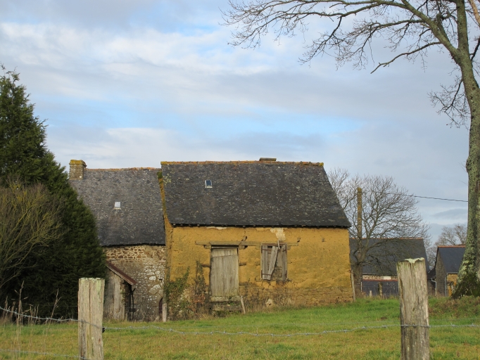 En 1833, lors de la réalisation du premier cadastre communal, cet ensemble de bâtiments se trouvait au sud du village de la "Brenangère". Le bâtiment situé à l'est de la route était semble-t-il à l'époque divisé en trois propriétés différentes : deux au sud et la troisième, dans la partie en retour d'équerre au nord. Pourtant, au vu de son organisation intérieure, originellement, ce bâtiment pourrait n'avoir abrité qu'une seule propriété. Ainsi, ce bâtiment était composé d'une pièce à feu au rez-de-chaussée à l'est, surmontée d'un grenier. La partie ouest du bâtiment était quant à elle composée d'une pièce sans feu au rez-de-chaussée, probablement un cellier ou une étable, surmontée d'une chambre possédant une cheminée sur le mur pignon ouest. Ce type de disposition était ainsi fréquent car il permettait aux habitants de bénéficier dans les deux pièces de vie de la chaleur créée par les animaux logés à côté et sous les pièces de vie. Par ailleurs, la partie nord, en retour d'équerre, est organisée comme la partie ouest, c'est-à-dire qu'il existe une pièce sans feu au rez-de-chaussée surmontée d'une pièce avec cheminée sur le mur pignon nord. Si cet ensemble ne formait à l'origine qu'une propriété, il est probable que l'escalier qui permettait de desservir les pièces de l'étage ait été un escalier en vis logé dans l'un des angles du bâtiment. Les caractéristiques architecturales de ce bâtiment témoignent pleinement de la première moitié du 17e siècle. Ainsi, la forte pente de toiture possédant un coyau, la porte en plein cintre à doubles rouleaux de la façade sud ou encore l'existence d'un cavet sur l'encadrement de l'une des fenêtres sont des éléments propres à cette époque de construction. Cependant, certaines baies ont été transformées, c'est le cas des percements de la partie est de la façade qui ont été agrandis. Avant de ne devenir qu'une dépendance des bâtiments situés en face, à l'est de la route, le bâtiment qui se trouve à l'ouest de la route a selon toute vraisemblance abrité un logis. Ainsi, le pignon sud témoigne de l'existence d'une cheminée au rez-de-chaussée de cette partie. Ce bâtiment était donc probablement le siège d'une petite ferme, composée, sous un même toit, d'une pièce à feu au sud et d'une dépendance (étable, cellier) au nord. L'ensemble était surmonté d'un grenier. La construction de ce bâtiment semble un peu moins ancienne que celle du bâtiment situé à l'est de la route. Ainsi, les caractéristiques de l'architecture de ce bâtiment attestent plutôt d'une construction de la fin du 17e siècle ou du début du 18e siècle. Certaines baies, notamment celles du pignon sud semblent avoir été percées au cours du 19e siècle. Le bâtiment situé au sud-est, composé pour partie de moellon de granite et pour partie de bauge, existait déjà lors de la réalisation du premier cadastre même s'il a été transformé depuis. Ce bâtiment a probablement abrité un logis, comme le montre le premier cadastre et le percement d'une porte et d'une fenêtre en façade sud, il existait d'ailleurs un fournil à l'ouest de celui-ci.