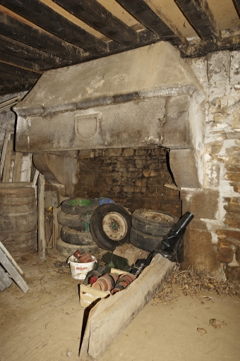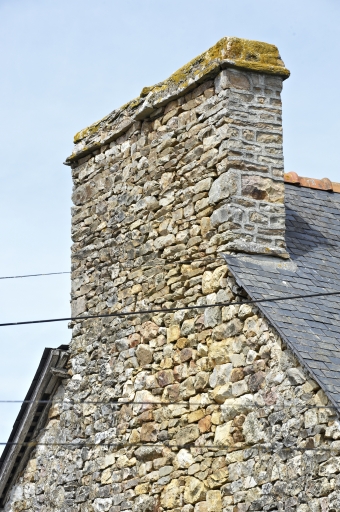 La maçonnerie de ce bâtiment est composée de moellon de grès ; seuls les encadrements de baies sont réalisés en pierre de taille de granite. Les toitures à longs pans sont couvertes d'ardoise ; elles présentent une forte pente et possèdent un coyau. Les baies de la façade sud ont été remaniées, toutefois, certaines ont conservé leurs encadrements d'origine. C'est le cas de la fenêtre de l'étage de la partie est qui possède encore un encadrement mouluré d'un tore et un appui saillant, ainsi que des gonds qui témoignent de l'existence d'une grille à l'origine. Les autres baies de cette partie de la façade ont été remaniées, le plus souvent agrandies ; le linteau d'origine de la porte a été remplacé par un linteau en bois. Le rez-de-chaussée de cette partie a conservé ses dispositions d'origine, la cheminée se trouve sur le pignon est. Elle est monumentale et réalisée en granite. Les corbeaux sont à doubles ressauts, les piédroits sont chanfreinés et la hotte est pyramidale. Sur le linteau de la cheminée, se trouve en partie centrale un écu lisse entouré d'un cordon. Le mur nord de cette pièce conserve les traces d'un vaisselier et de l'escalier en vis qui desservait l'étage.