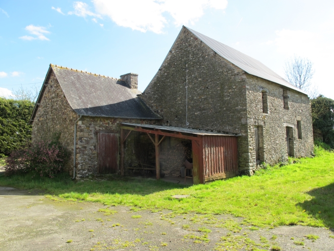 La maçonnerie de ce bâtiment est réalisée en petits moellons de grès et de schiste. Le toit est très pentu, il est actuellement couvert de tôle. La majorité des baies de la façade ouest possède des linteaux en bois, certains sont en arc segmentaire, comme celui de la porte haute de la partie nord du bâtiment. La fenêtre de la partie sud du rez-de-chaussée possède quant à elle un encadrement en pierre de taille de granite chanfreiné. Le rez-de-chaussée est accessible grâce à la présence de deux portes ; l'accès au comble se fait par deux portes hautes percées dans le surcroît.