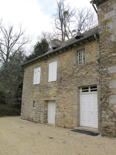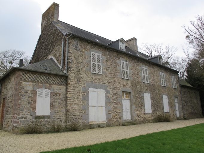 Les bâtiments qui composent ce lieu sont composés de maçonneries de moellon de granite et de grès. Les toitures à longs pans sont couvertes d'ardoise. Les baies des bâtiments de la ferme, situés à l'est, possèdent des linteaux et des clés en bois ; la partie sud-est présente des encadrements réalisés en brique. Un four est accolé au nord de ce bâtiment. Les baies des bâtiments situés à l'ouest, correspondant à la maison de maître, présentent des encadrements en pierre de taille de granite. Les encadrements des baies d'origine de la partie ouest possèdent un cavet et certaines fenêtres sont encore grillées. Les percements de la partie est sont très réguliers et symétriques et forment cinq travées en façade sud ainsi qu'en façade nord. En façade sud, cinq lucarnes à linteaux légèrement cintrés éclairent le comble, il en existe deux du même type en façade nord. Deux autres petites lucarnes couvertes d'un toit à deux pans éclairent le comble de la partie ouest en façade sud. Une corniche composée de corbelets en bois sculptés se trouve sous la toiture de ces bâtiments.