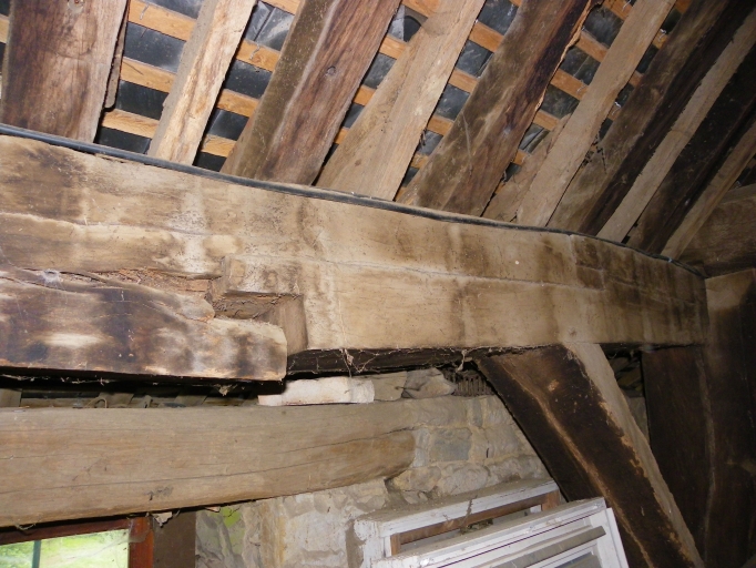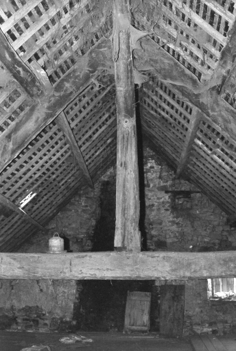 Cette ancienne ferme s'inscrit dans un hameau constitué de plusieurs fermes. On y trouve aussi des éléments constituants tels que puits et granges. La ferme qui nous intéresse est implantée à l'ouest du hameau, elle offre sa façade principale à l'est, sur une cour. Cette cour était bordée à l'origine par deux autres maisons au nord, dont l'une d'elle tombe en ruine, et comporte un puits. Cette longère était composée à l'origine de deux unités d'habitation, une à chaque extrémité, et deux étables au centre du bâtiment. Chaque habitation est percée d'une porte et d'une fenêtre à l'est tandis que la façade postérieure est occupée par le cellier ou l'arrière cuisine. La maison nord est même dotée d'une porte en plein cintre, avec arc en granite. Le granite est aussi repris pour les deux fenêtres des habitations. Les autres ouvertures sont toutes dotées de linteaux et d'appuis en bois avec des blochets intégrés dans les piédroits. Les éléments les plus intéressants et même originaux ne sont pourtant pas visibles de l'extérieur mais relèvent du mode constructif même du bâtiment. En effet, l'ensemble du bâtiment est en fait constitué d'une charpente sur poteaux que l'on a habillé ensuite par de la maçonnerie de moellon. La charpente est indépendante de la maçonnerie et forme la structure principale du bâtiment. La séparation intérieure entre les pièces est constituée par des cloison en planches qui s'insèrent dans les poutres du plafond au rez-de-chaussée, tandis qu'à l'étage elles sont constituées de planches et de torchis. La maison nord est celle qui a conservé le plus d'éléments traditionnels, parmi lesquels une cheminée en granite et des niches dans le mur pignon. Elle possède également un entresol que l'on ne retrouve pas au sud.