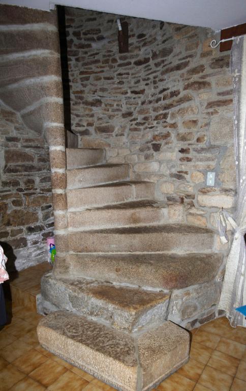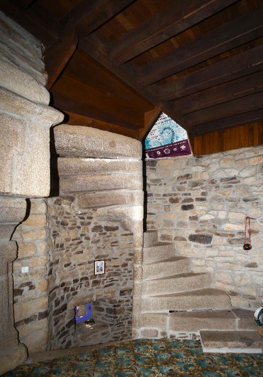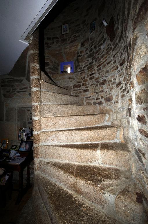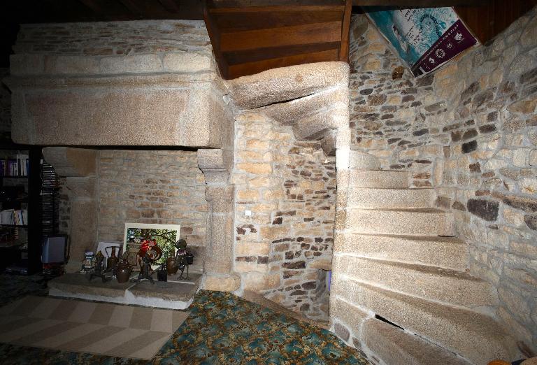 Par ailleurs, les équipements intérieurs conservés sont également propres à cette époque de construction : vaisselier au rez-de-chaussée, escalier en vis en granite logé dans l’angle sud-est de la pièce, cheminées monumentales en granite (piédroits en forme de colonnes à l’étage)… La présence de deux pièces à feu, dont l’une à l’étage desservie par un escalier en vis, évoque un lieu noble.