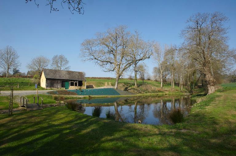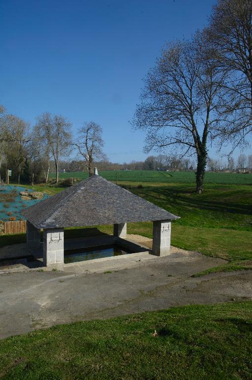 L´originalité de ce lavoir réside dans son plan carré. Il est composé d'un toit en pavillon, soutenu par quatre piles, qui couvre le bassin. Certains lavoirs étaient des bâtiments beaucoup plus simples que celui-ci, prenant la forme d´un préau, alors que d´autres avaient des formes plus insolites. C´est le cas des bateaux-lavoirs qui existaient sur les grands cours d´eau dans les villes (il en existe encore sur la Mayenne à Laval par exemple). Comme la majorité des autres lavoirs, la construction de celui-ci date de la fin du 19e siècle. C´est effectivement à cette époque que de nombreux lavoirs sont construits dans un souci de développement de l´hygiène dans les communes. Le lavoir servait au lavage et au rinçage du linge. Ce lavage pouvait également se faire à domicile, le lavoir ne servait alors qu´au rinçage du linge, étape de la lessive qui nécessitait de grandes quantités d´eau. Comme ici, le bord du lavoir était généralement incliné vers le bassin, les femmes s´agenouillaient donc à même le sol ou bien dans un bac en bois appelé « carrosse » afin de jeter le linge dans l´eau et de le frapper avec un battoir dans le but de l´essorer. Le « carrosse » évitait aux femmes d´avoir les genoux trempés, notamment en période hivernale. Les femmes qui fréquentaient les lavoirs étaient appelées des lavandières.