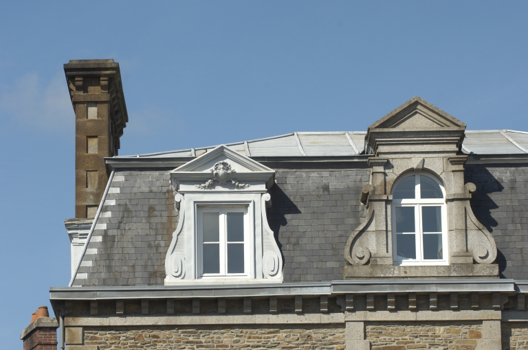 Il existait déjà une construction à cet emplacement en 1823, lors de la réalisation du cadastre napoléonien. Toutefois, il ne s'agit pas du bâtiment actuel dont les caractéristiques architecturales permettent d'en faire remonter la construction à la fin du 19e siècle. Ainsi, la régularité des percements de la façade, le matériau utilisé pour les encadrements de baies (granite bleu) ou encore le décor des garde-corps du balcon central de l'étage sont des éléments qui permettent de faire remonter la construction à cette époque.