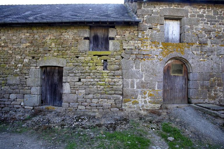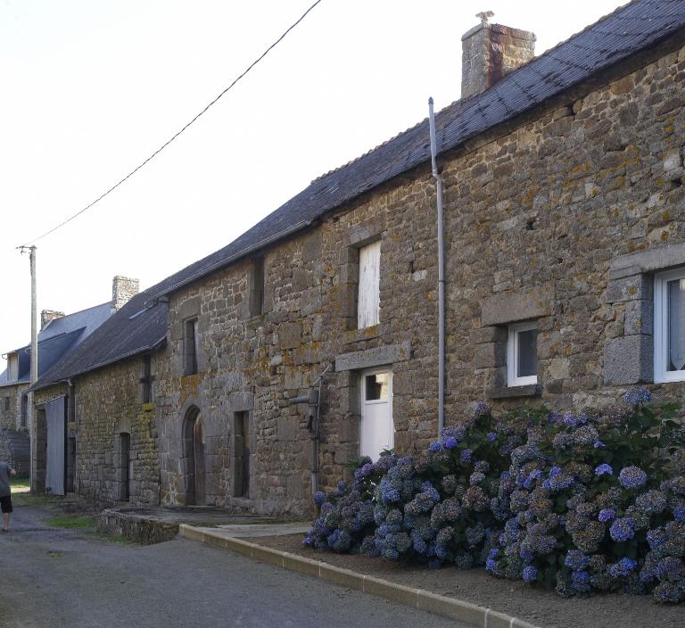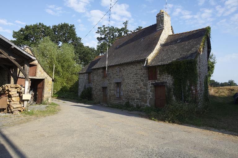 Le logis ancien est élevé en moyen et grand appareillage de granite. Sa façade principale est percée d'une porte en plein cintre à double rouleaux et aux montants chanfreinés. Une seconde porte a été ajoutée par la suite venant agrandir une fenêtre plus ancienne dont le linteau, décoré d'une accolade et d'un cœur, est encore apparent. Deux baies entourées de pierre de taille de granite chanfreinées donne accès au grenier. L'une d'elle porte un appui saillant. Le toit à longs pans est couvert en ardoise. La façade principale de l'alignement illustre bien les modifications successives opérées au gré des besoins et au fil du temps. Ainsi se côtoient sur la même façade le plein cintre des portes, les anciennes ouvertures tronquées et les linteaux déplacés, laissant cependant deviner l'ordonnance originelle de cet habitat ancien.