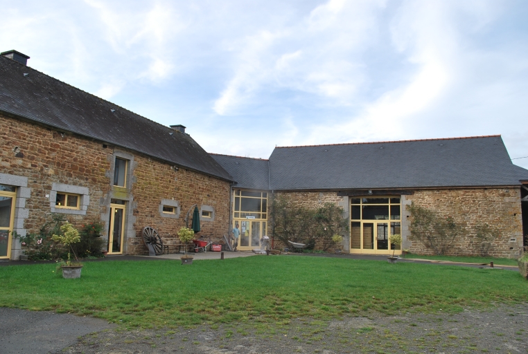 Les écuries du château sont élevées en moellon de granite, exceptés les chaînages d´angles et les encadrements de baies. La façade principale est ordonnancée de manière régulière et symétrique. Les fenêtres à linteaux droits sont axées sur les portes du rez-de-chaussée. Au centre de la façade se dessine une porte cochère monumentale coiffée d´un arc en plein cintre. Toutes les ouvertures de la façade se répercutent en toiture par l´apparition de lucarnes à chevalet, surmontées d´un linteau en bois à arc segmentaire. La couverture est en ardoise, le faîtage en tuile et la toiture est à deux versants. On peut également remarquer une souche de cheminée en partie droite du bâtiment. Celle-ci permet de chauffer la pièce basse réservée au personnel en charge de l´écurie. La ferme du château est composée de différents bâtiments agricoles et notamment d´une grange, de soues à cochons, d´un four à pain à deux gueules, d´une étable et de bâtiments d´habitations. Le tout étant également élevé en moellon de granite, exceptés pour les encadrements de baies et les chaînages d´angle, et couvert d´ardoise. La grange conserve sa charpente d´origine et est coiffée d´une toiture à longs pans se terminant par un léger coyau. Sa façade principale est percée d´une porte cochère surmontée d´un grand linteau de bois. Les joints sont à la chaux et les ouvertures ont été remplacées. Un bâtiment de liaison a été construit entre la grange et l´étable. Cette dernière présente une façade principale aux ouvertures régulières dont les encadrements sont en pierre de taille de granite bleu. Sa toiture est également à longs pans et l´on peut voir quelques jours qui viennent ventiler les combles. Les ouvertures ont également été refaites. Le four à pain (aujourd´hui détruit) présentait la particularité de posséder deux gueules, ce qui atteste d´une certaine richesse. Il devait être élevé en moellon de granite et intégré au fournil en façade ouest. Ce dernier est coiffé d´une toiture à deux versants en ardoise qui se termine par un léger coyau. Le bâtiment qui sert aujourd´hui d´habitation aux propriétaires de la ferme devait également être une écurie car il est percé de manière régulière d´oculi en brique. C´est un édifice également monté en moellon de granite sauf pour les encadrements de baie. Ceux-ci sont coiffés de linteaux droits en pierre de taille, exceptée pour une ouverture plus petite qui est couverte d´un linteau en bois. L´intérieur de l´édifice confirme la fonction d´écurie puisque le sol était pavé, selon les sources orales, et que des stalles sont encore en place.